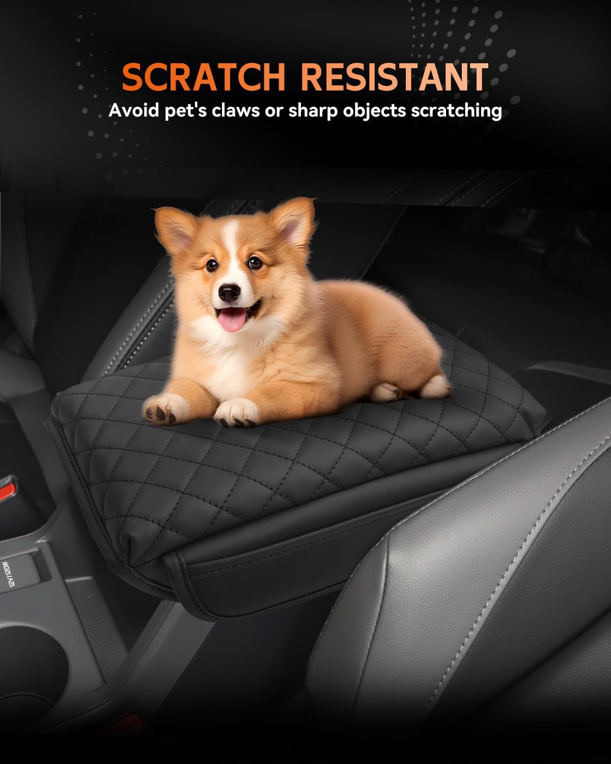 - [Excellent Scratch Resistance] The car center console mat is made of high quality PU microfiber leather, thick enough to keep out pet paws, dust and sticky fingers. The surface is waterproof, wear-resistant and durable, breathable, light weight and easy to wipe clean of dirt.