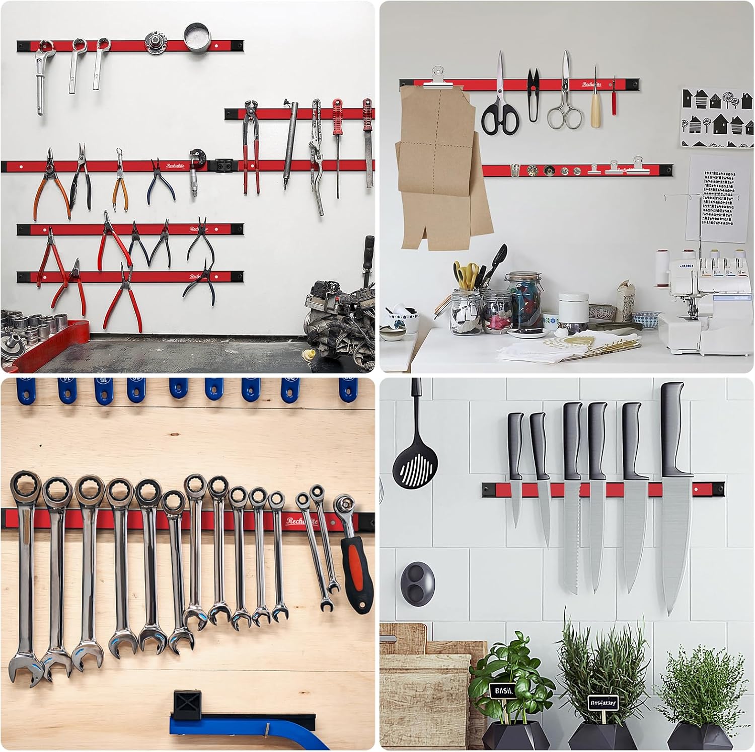 - MAGNETIC TOOL HOLDER SET: Rechabite magnet tool organizer set includes 6 pieces 24" magnetic tool bars, comes with 12 mounting brackets, screws and anchors. Each magnetic tool strip is extendable with each other connected.