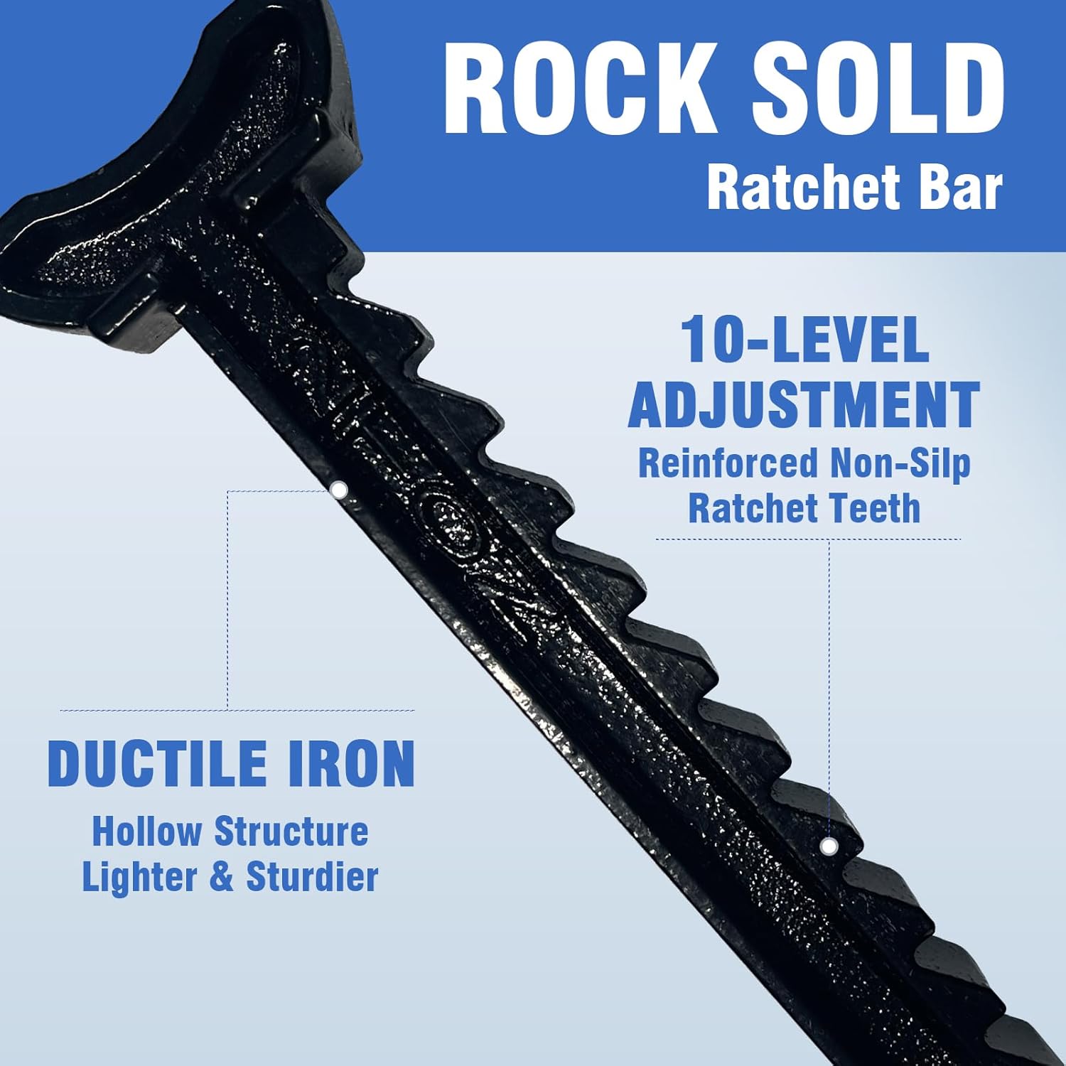 - Quick Height Adjustments: Sawtooth design allows the bar to be fixed in different positions. Theratchet bar is forged from ductile iron, thickened and forged in one piece, which is not easy to break.