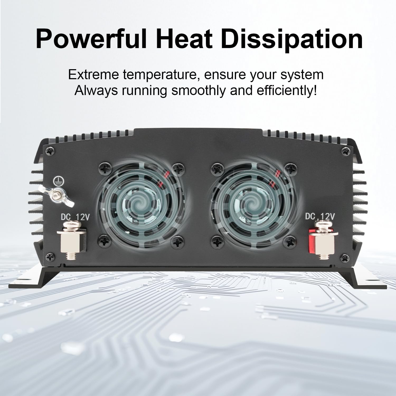 - {Cooling Fan} The modified wave 12v power inverter uses an intelligent fan system to dissipate heat during the entire operation. When the internal temperature of the machine reaches a certain level, the fan rotates to effectively reduce the temperature.
