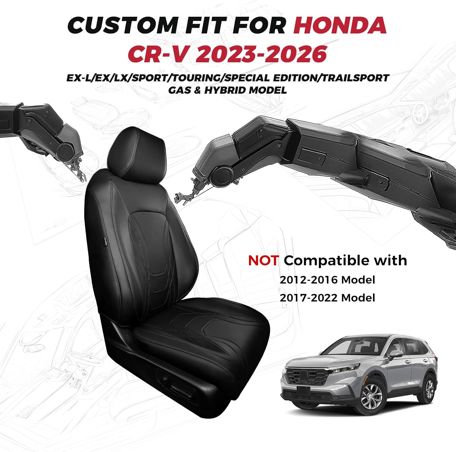 - 【1:1 PERFECT CUSTOM FIT】: Provide a glove-like custom fit for Honda CR-V without interfering with airbags or seat functions. Specifically designed for Honda CR-V 2023 2024 2025 2026 (LX/EX/EX-L/Touring/Sport/Special Edition/Trailsport), including both gas and hybrid model.