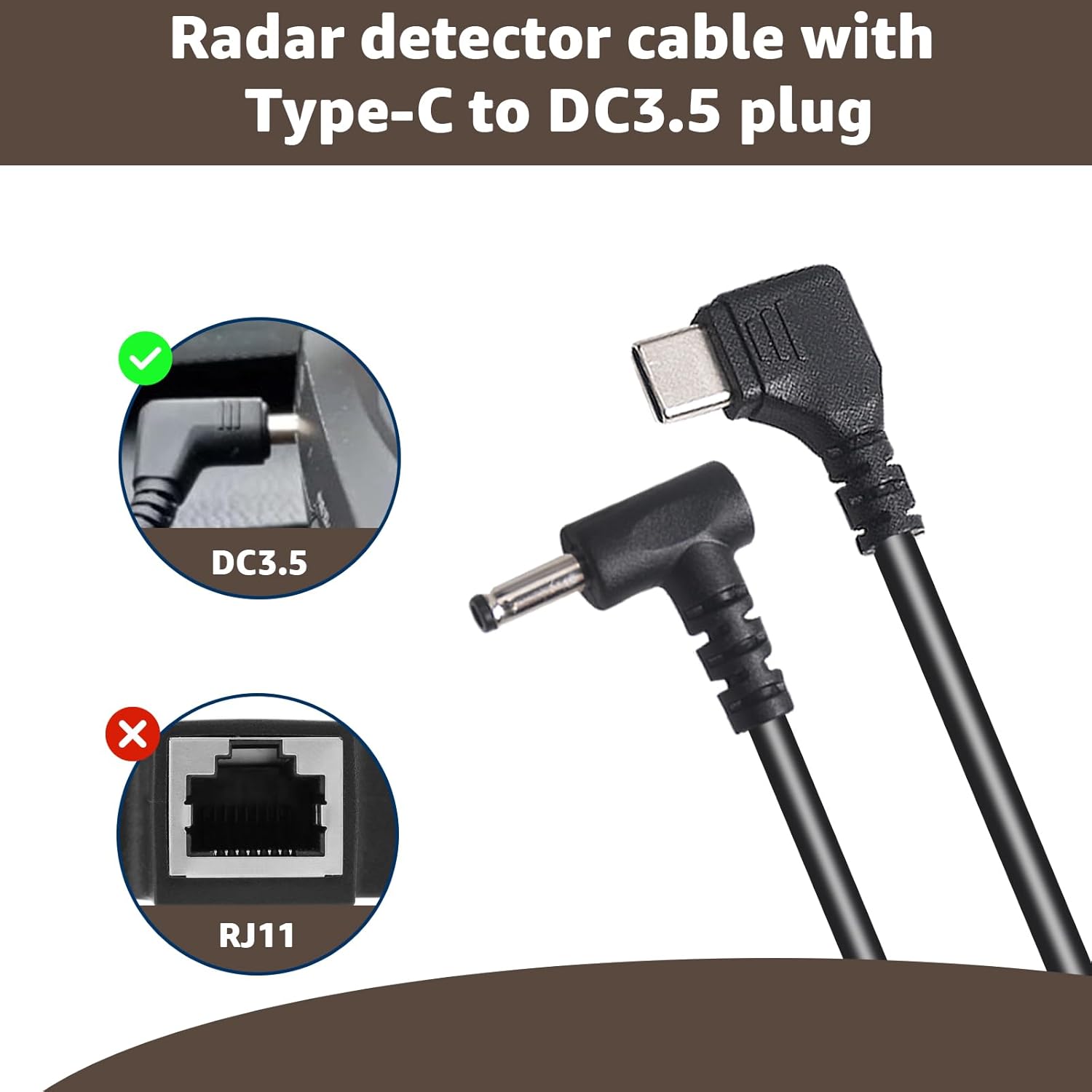 USB-C to DC3.5 Power Cable for Radar Detectors, 8.2FT 5V-12V Type C Power Cord Compatible with Cobra RAD 480i, 350, 380, Uniden DFR1,3,5 Series, Whistler, & Radenso Radar Detectors
