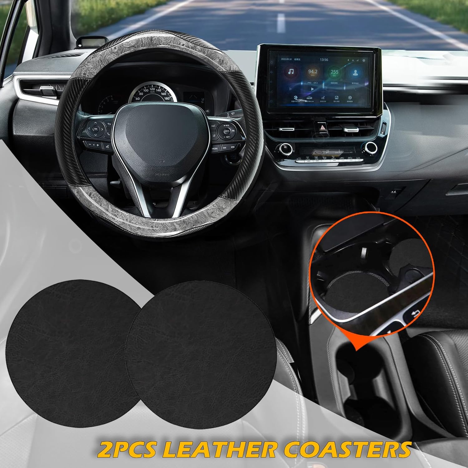 - Stylish Classic Design: Elegant gray wood grain steering wheel cover with 2 car coasters to dress up your car and make it less monotonous. The stylish leather and wood grain splicing design is beautiful and classy, showing details everywhere
