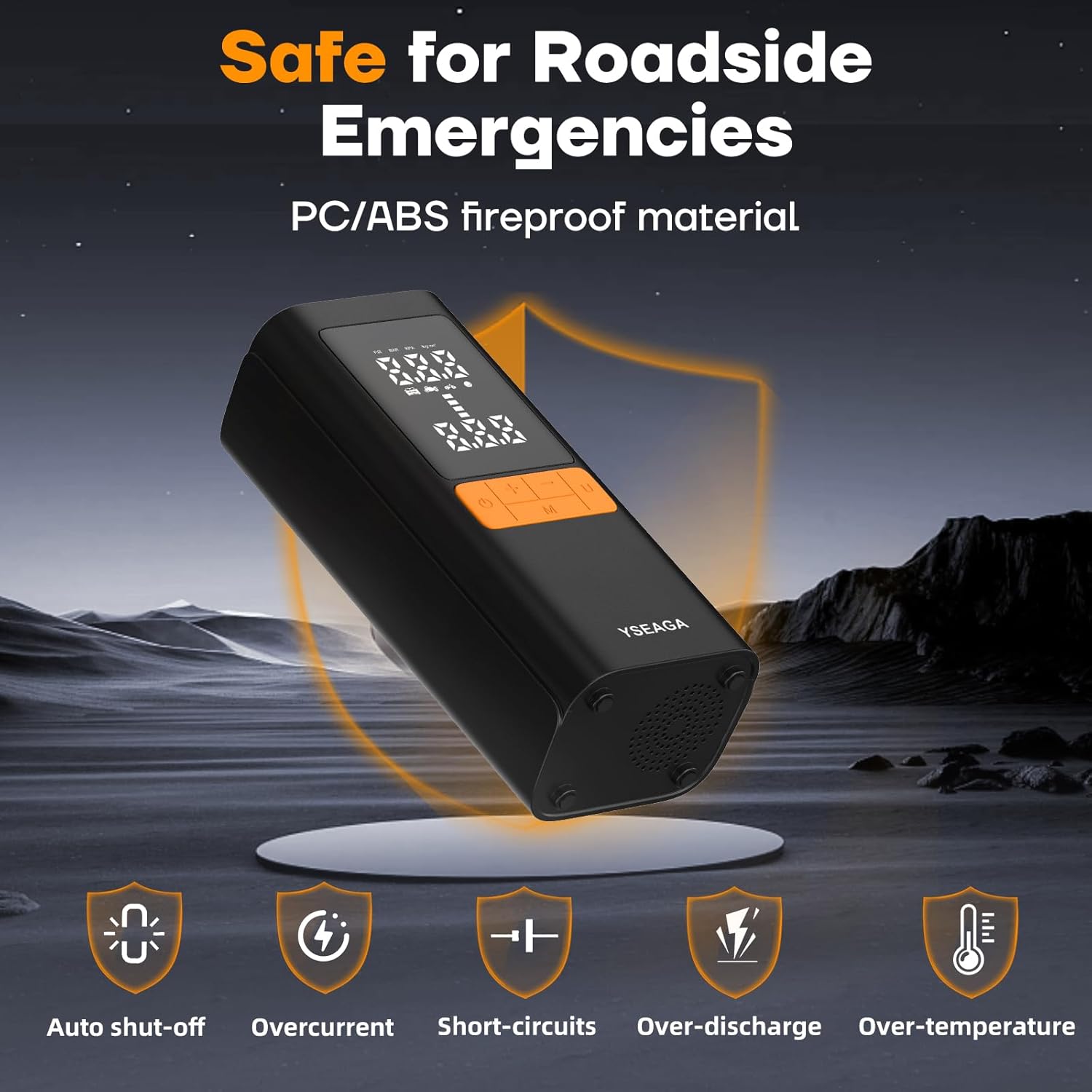 - Auto Shut-off & Fireproof Design: Set it and forget it. Simply input your target PSI via the backlit digital screen, and this cordless tire inflator will auto shut-off at the exact pressure with ±1% PSI precision. Built with PC/ABS fireproof casing and protecting against overload, overheating, short-circuits, etc., this pump is perfect for roadside emergencies or beginners.