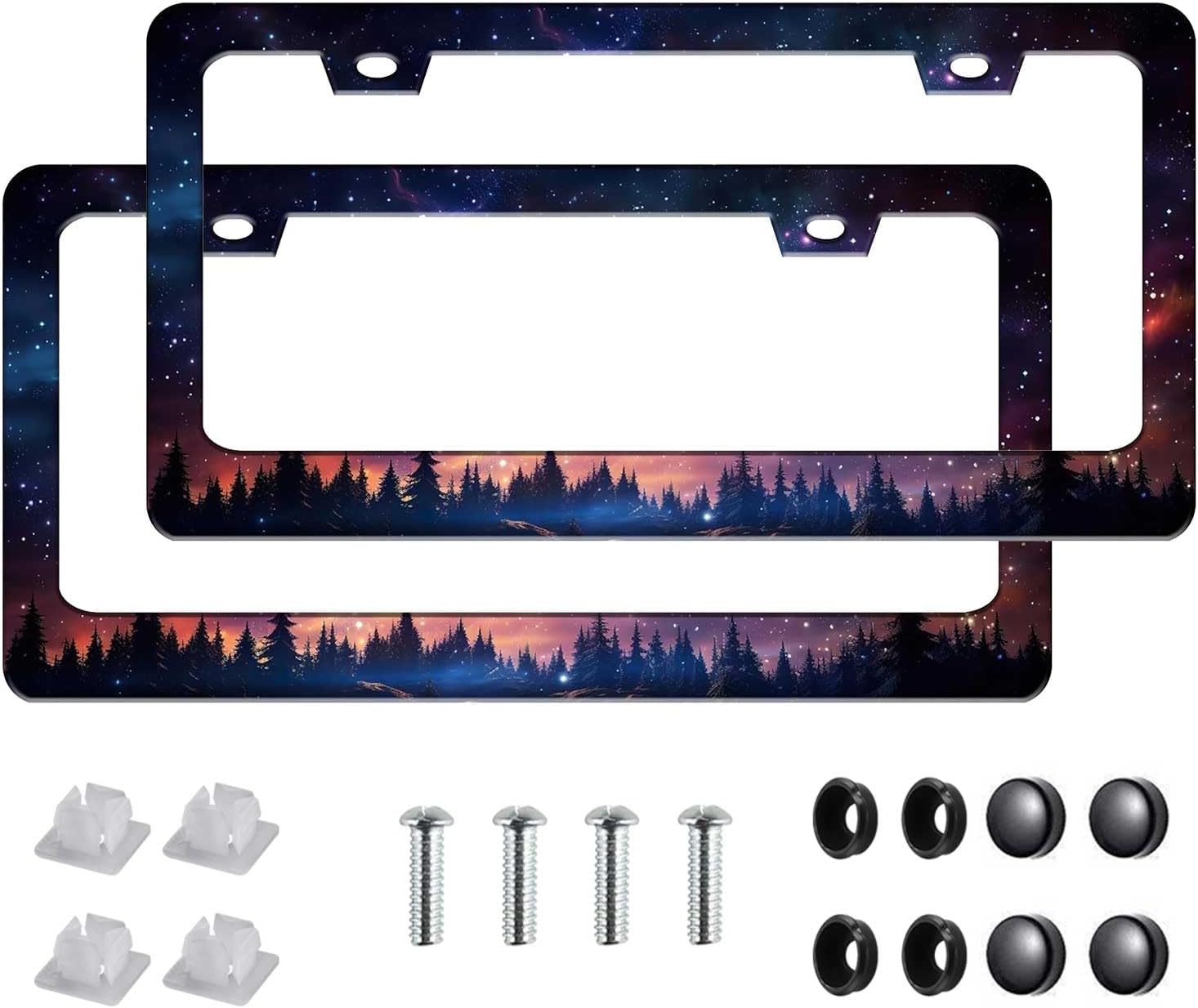 Universal License Plate Frame - Heavy Duty Rustproof Aluminum Matte Black Car Tag Holder Bracket Fits All US States, Easy Install with Screws Included (Starry SkStarry Sky Galaxy-2pcy Galaxy-2pc)