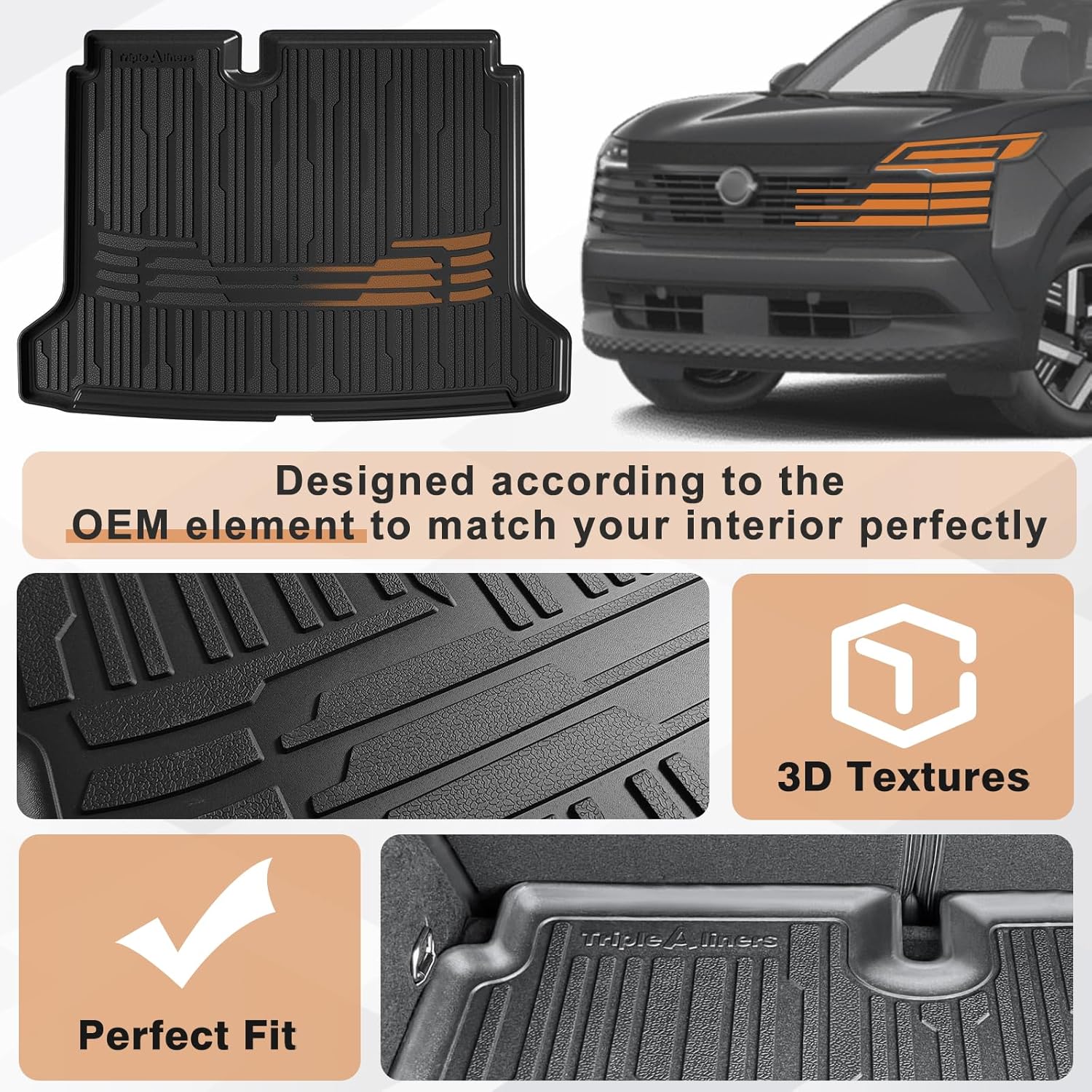 - Function & Why Us: Protect your trunk with full coverage, keeping a clean look and OEM style. 3D texture and anti-slip surface design ensure a flush fit and perfect stability. TripleAliner's mats feature reinforced edges for long-lasting performance