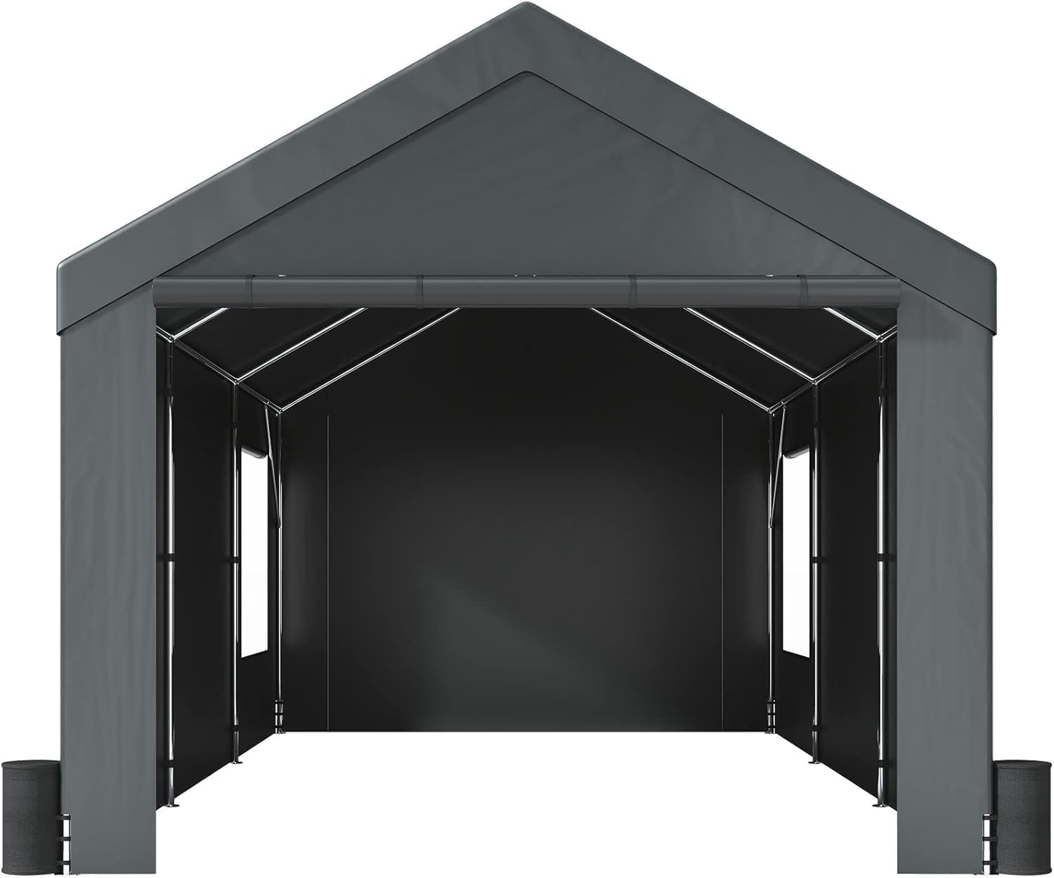 Auraway Carport 12'x20' All-Season Portable Garage Carport, Heavy-Duty Canopywith Roll-Up Vent Windows, Front and Rear Zip Doors, Sandbags, for Cars, Motorcycles and Outdoor Storage (Grey)