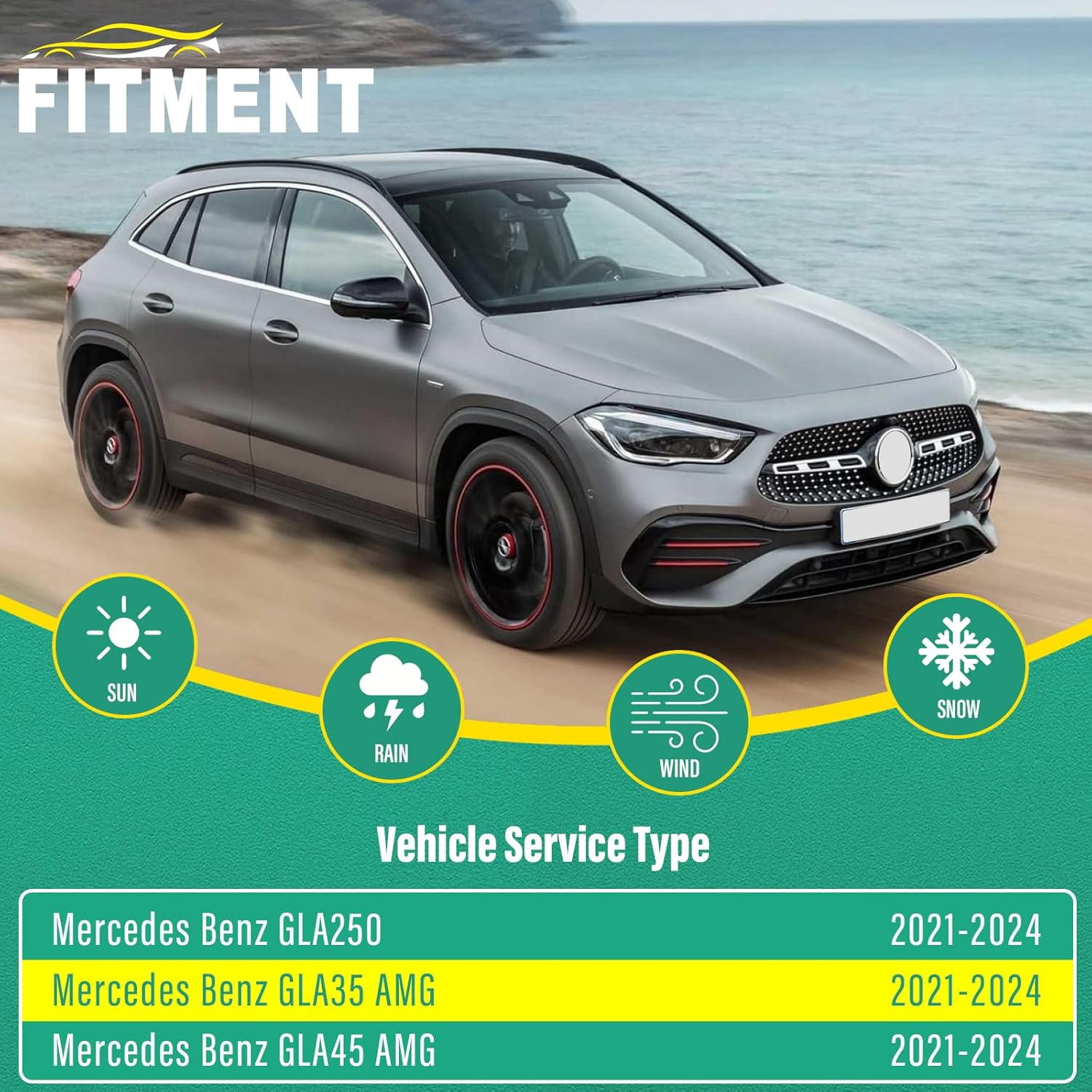 - [FITMENT1]: Replacement for 2021 2022 2023 2024 Mercedes-Benz GLA 250 26inch + 19inch front with 11inch rear windshield wiper blades.