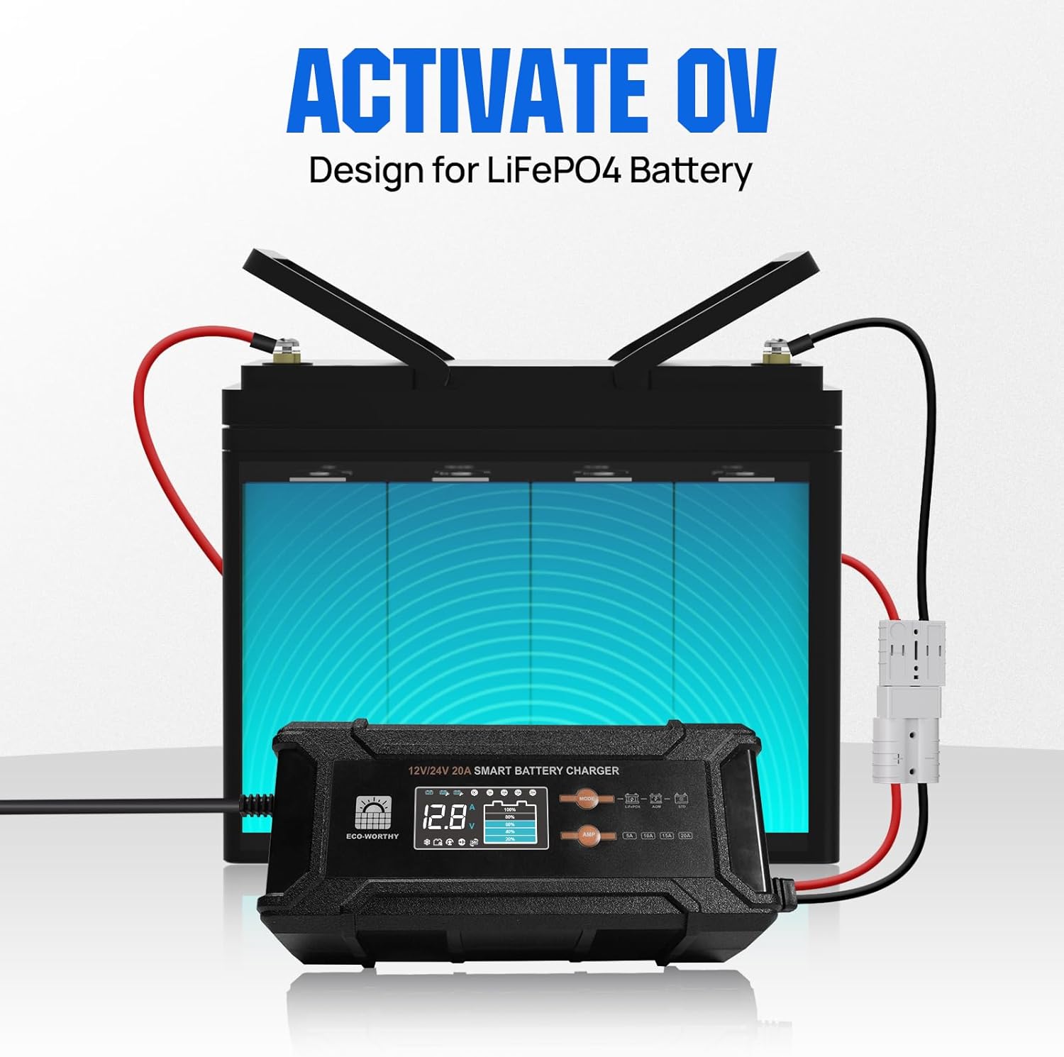 - Advanced LiFePO4 Battery Charger: Specifically engineered for LiFePO4 batteries, this charger ensures optimal charging cycles and extends battery life. Configure 0V activation function to ensure the normal voltage level of the 12V/24V LiFePO4 battery is restored when needed