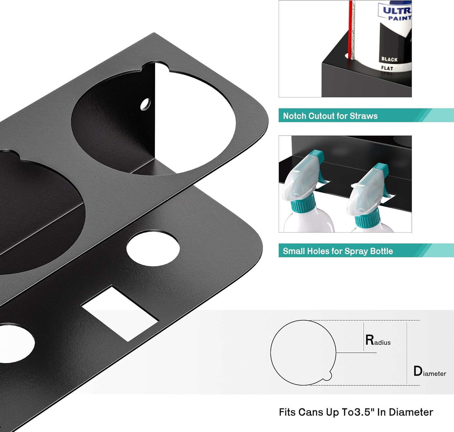 - WELL-MADE: Built with high-quality materials and precision craftsmanship, the spray bottle holder features spray trigger slots and grooves for straws—designed with thoughtful attention to detail. Its sleek black finish adds a modern, stylish touch