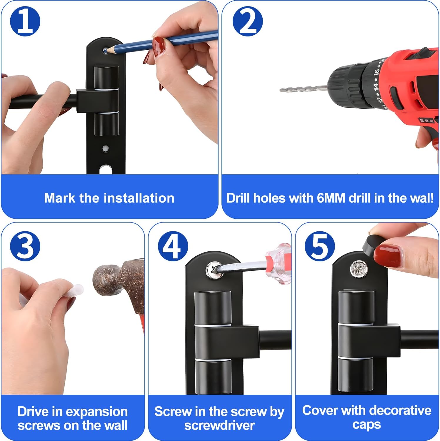 - HOLE-FREE WALL MOUNTING: As a motorcycle accessories, all necessary tools are included. You can choose between screw-based wall mounting or a no-drill adhesive installation. The process is quick, easy and damage-free, allowing you to install it on walls, doors or any desired location effortlessly.