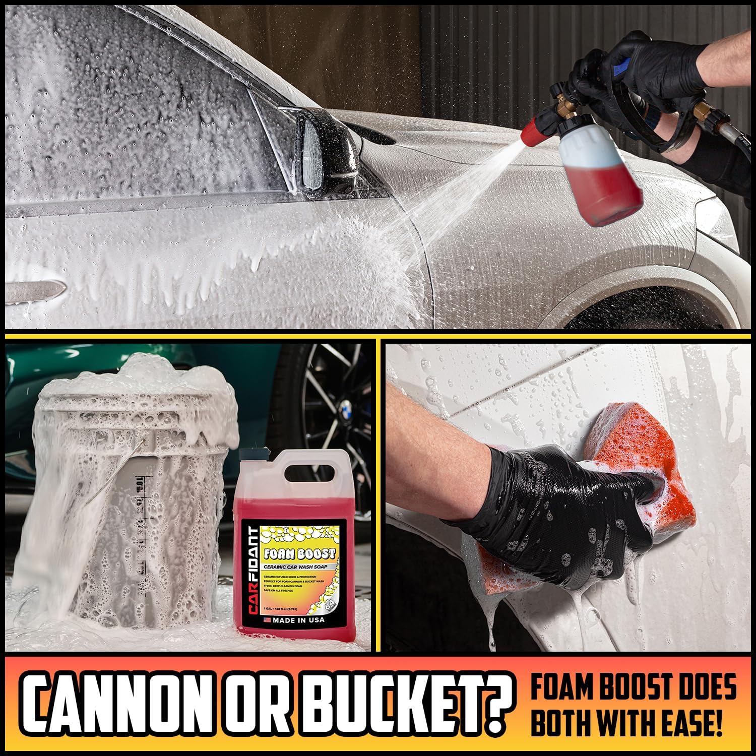 - WORKS WITH FOAM CANNONS, GUNS & BUCKETS: Whether you're using a pressure washer foam cannon, garden hose foam gun, or just a wash mitt and bucket - Foam Boost delivers a powerful cleaning experience without heavy residue.