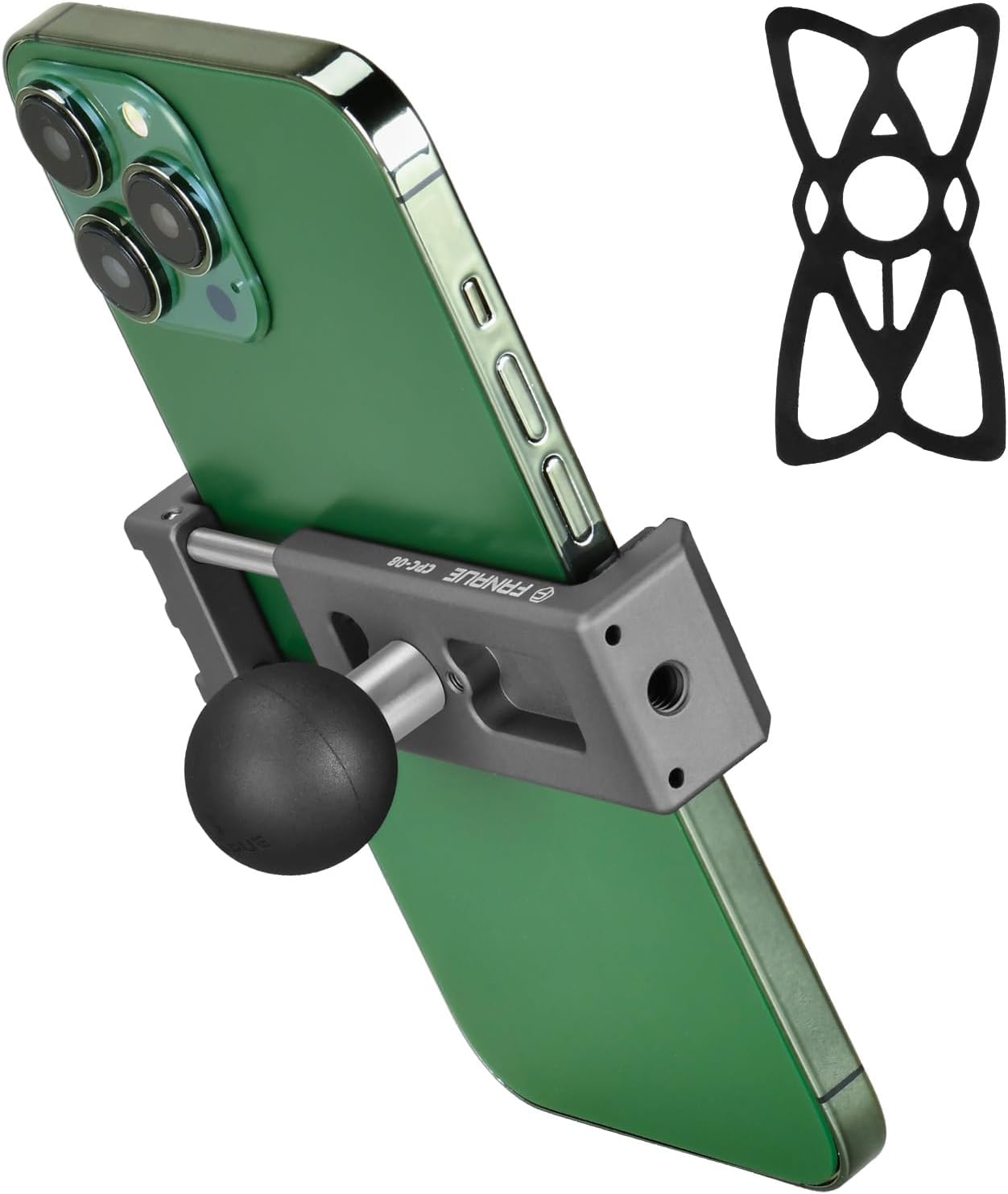 FANAUE Aluminum Phone Holder with 1" Ball Head Adapter - Universal RAM Mounts B Size Compatible, Double Socket Arm Design for Motorcycles/Bikes/ATVs/Cars/Trucks - Secure 360° Rotation