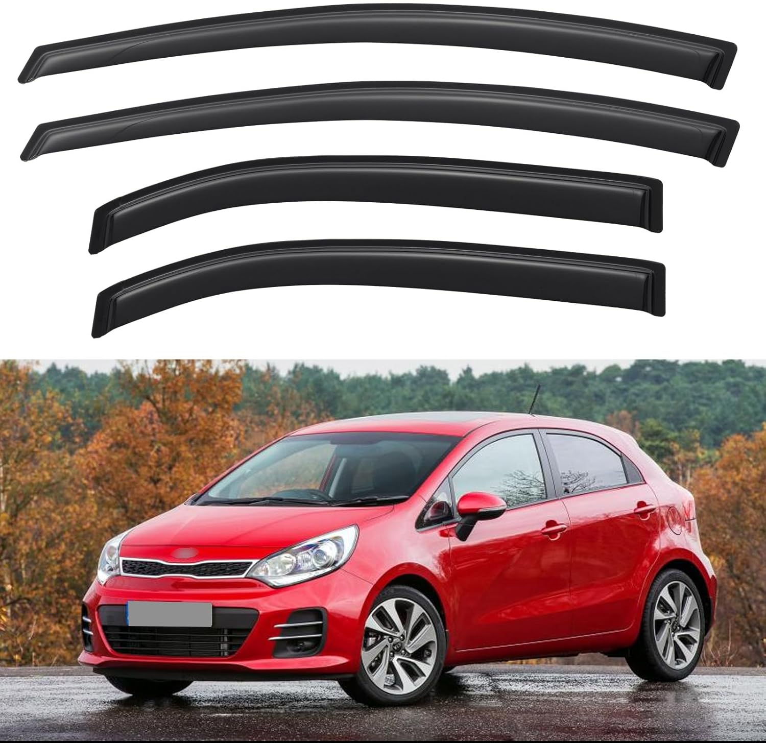 - 【Perfect Fit】YQAUTEC 4Pcs Window Visors Rain Guards Shield fit for 2012 2013 2014 2015 2016 2017 Kia Rio Hatchback, Side Window Vent Wind Deflectors Visors Shades for 12 13 14 15 16 17 Kia Rio Hatchback. (Not for Sedan!!!)