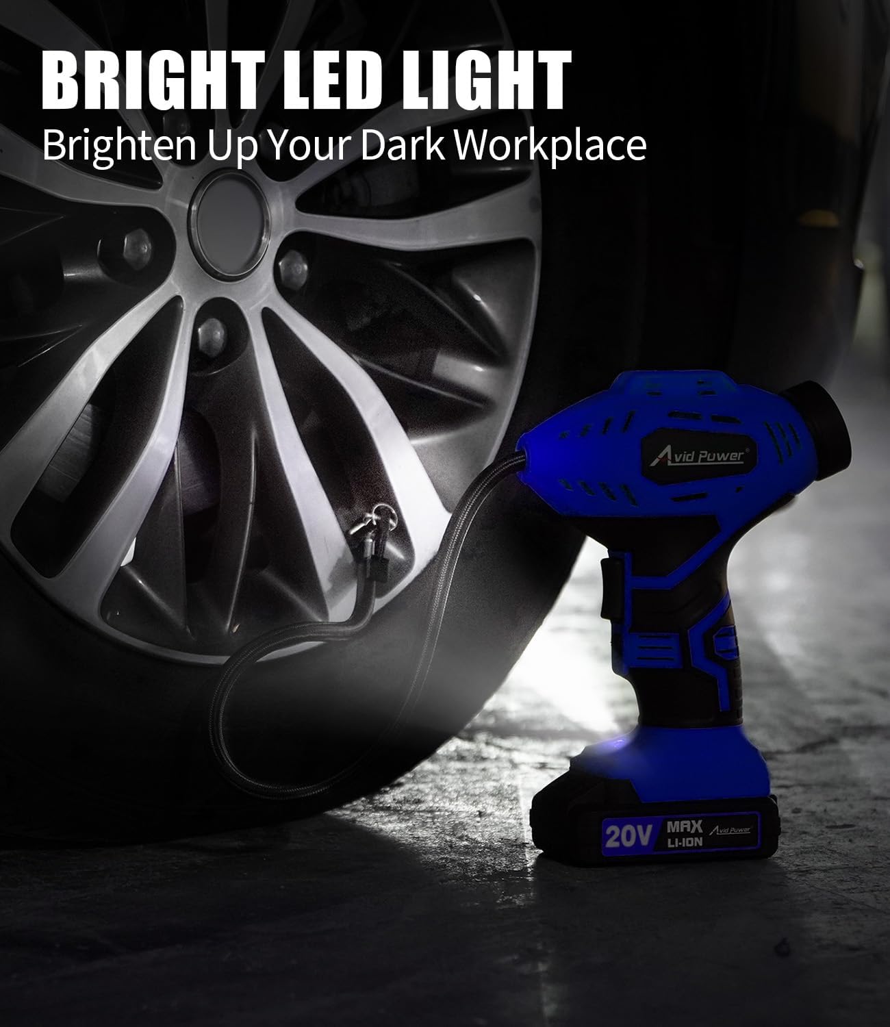 AVID POWER Cordless Tire Inflator Portable Air Compressor, 20V Rechargeable Battery Powered Car Tire Pump w/ 12V DC Adapter, Digital Pressure Gauge, Air Pump for Car, Bike, Motorcycle, Ball