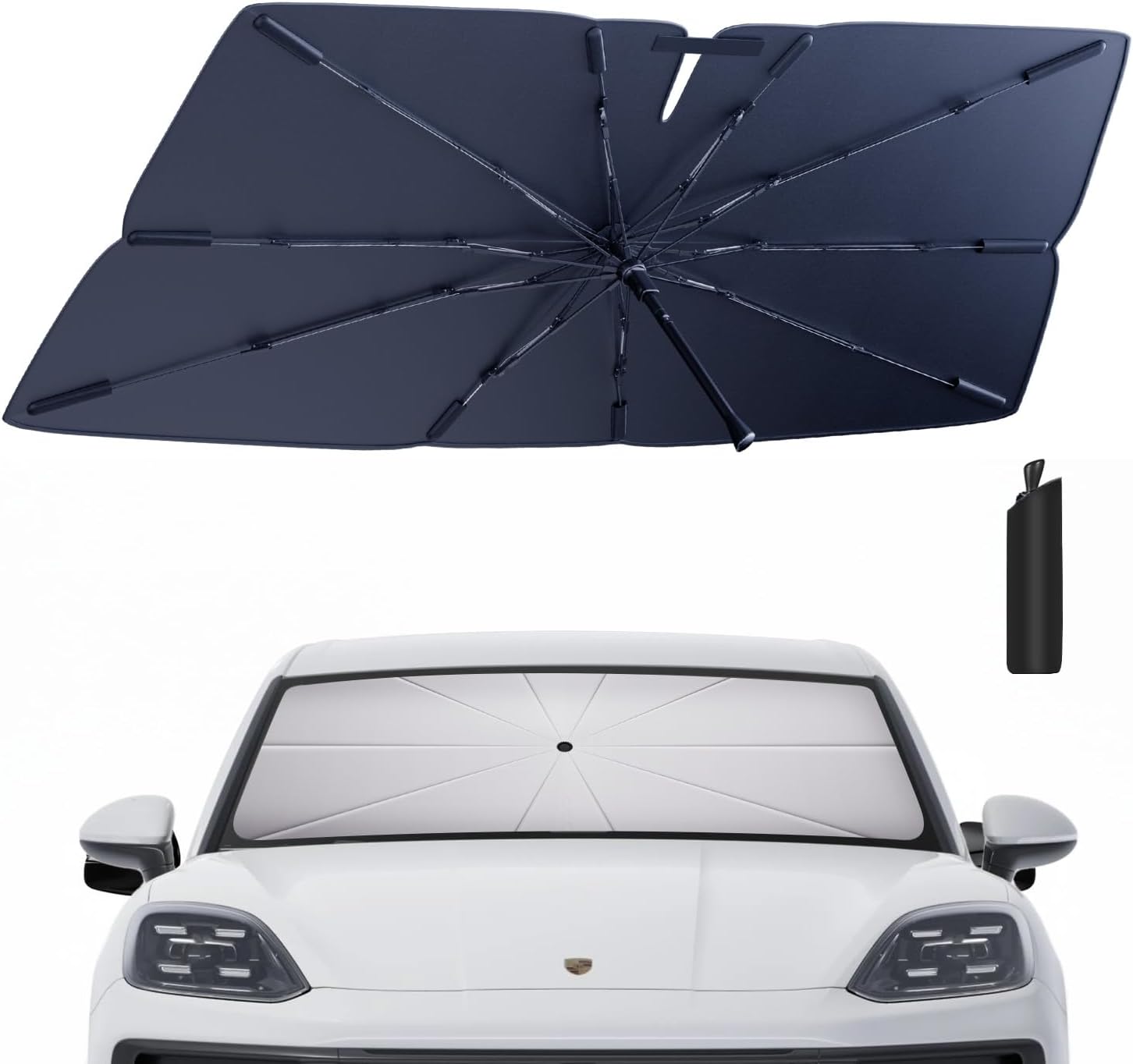 - Quick Installation and Portability for Porsche Cayenne: This Porsche Cayenne windshield sun shade umbrella provides instant shade and UV protection for your Porsche Cayenne. Its compact, foldable design fits neatly in the side storage, ensuring your Porsche Cayenne is always ready for sun protection. Perfect for every Porsche Cayenne owner, keeping your vehicle cool and protected.