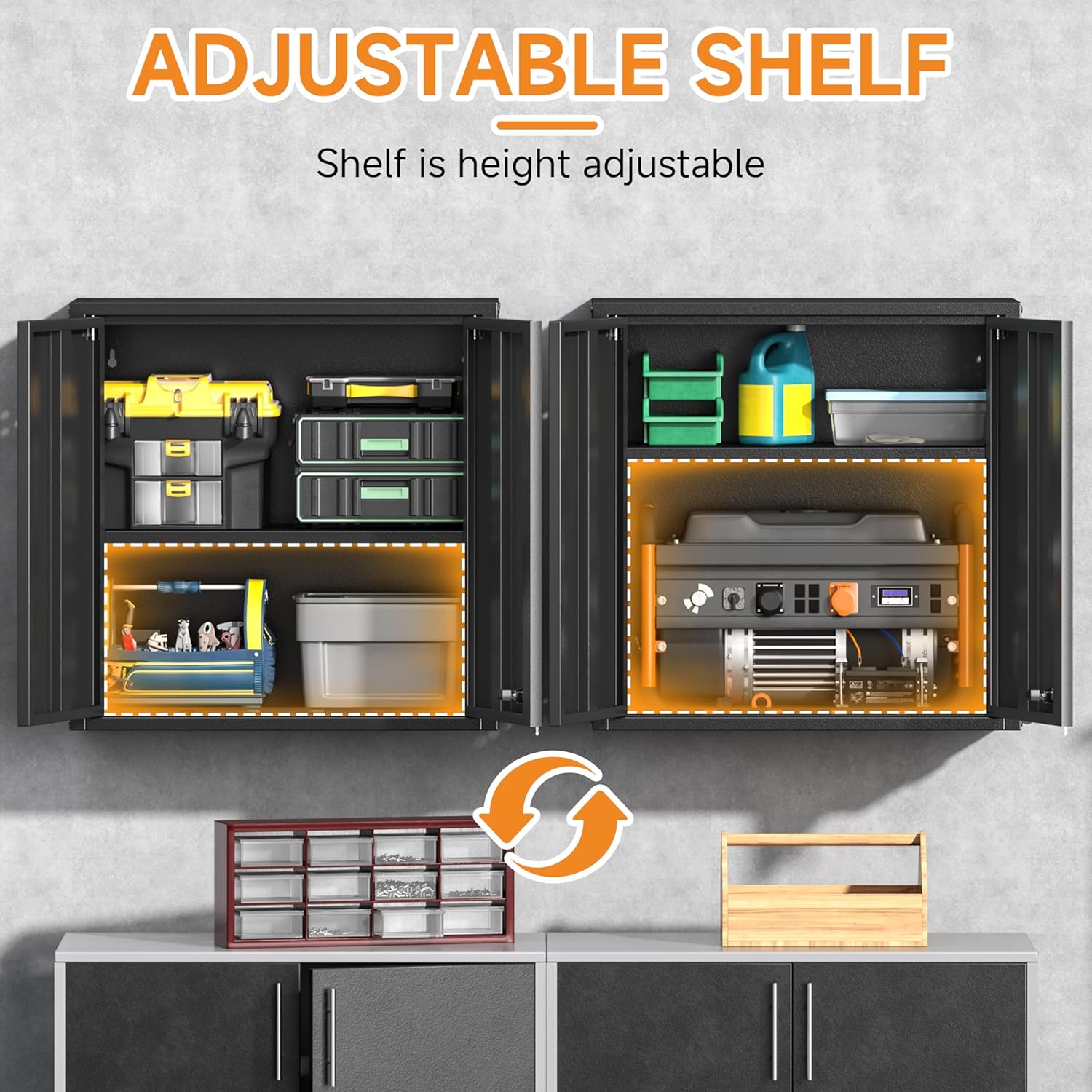 - 🛠️【Ample Storage Space with Customizable Layout】Adequate space to store garage tools or miscellaneous items.Offering more storage than traditional cabinets, this garage tool cabinet features adjustable and removable shelves, tailored to your specific needs.