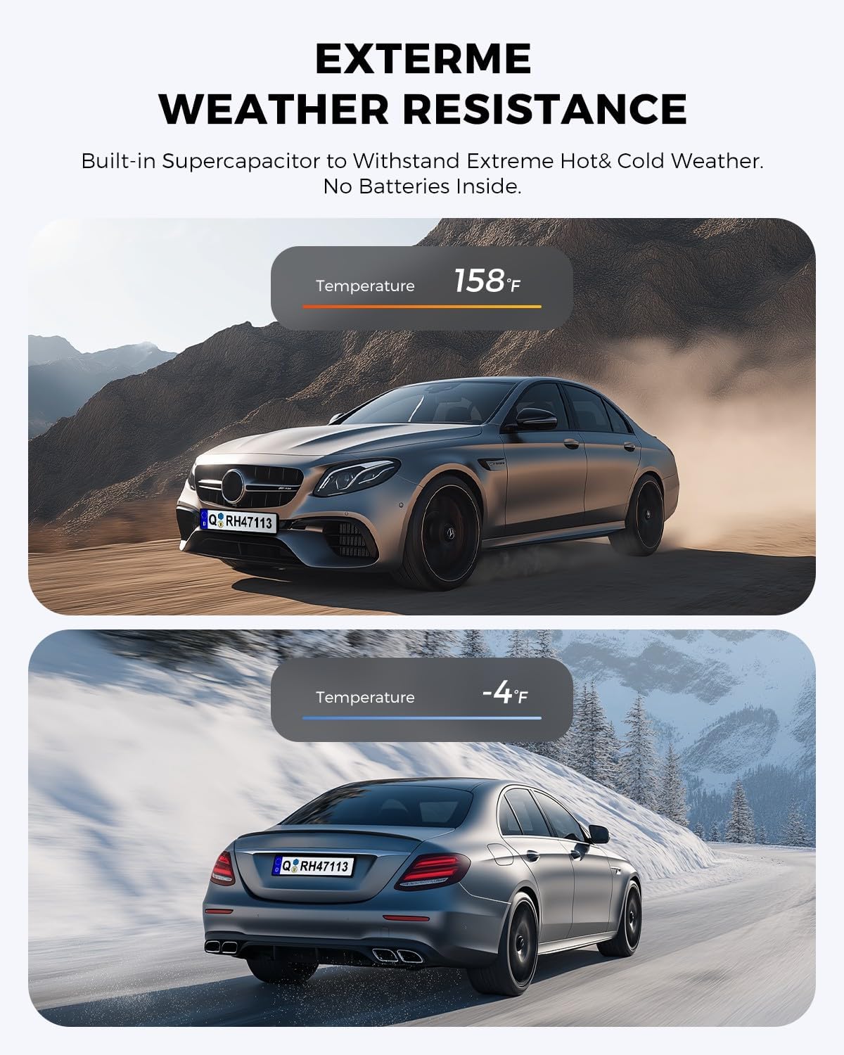 - 【24/7 PROTECTION & LOOP RECORDING】Features G-sensor collision lock, loop recording (auto-overwrites old files), and parking mode with time-lapse recording (hardwiring kit required ASIN: B0DPQSR7MH). Never miss an incident, even when parked.