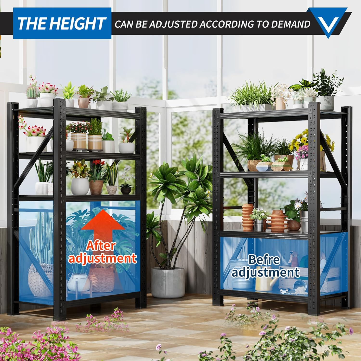 - Adjustable Metal Shelves: Our garage shelving Heavy Duty are adjustable. You can adjust the height of the shelves according to your needs. At the same time, you can also divide the high garage storage rack into two low ones to meet your storage requirements. The heavy duty garagre shelving is very suitable for garage storage and organization.
