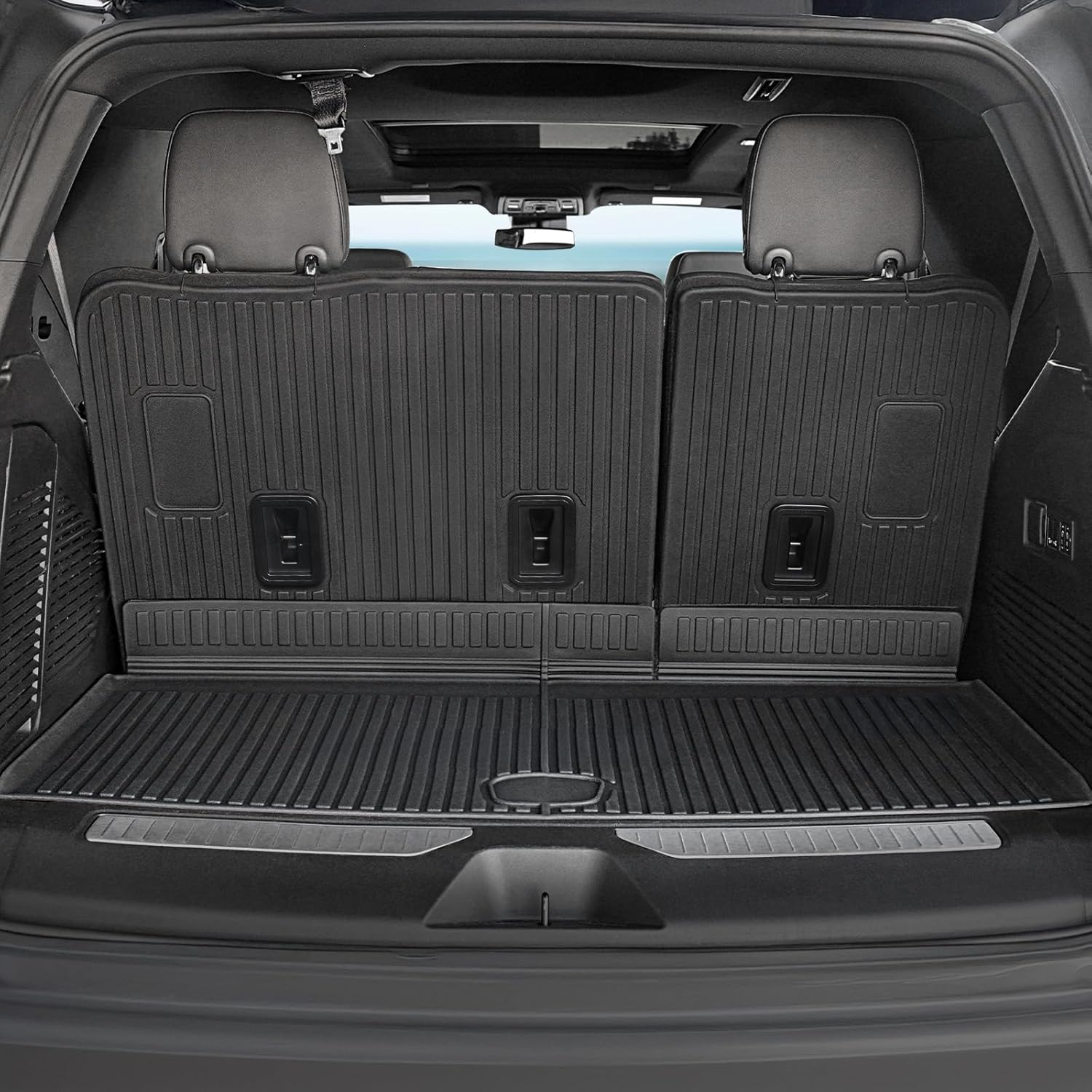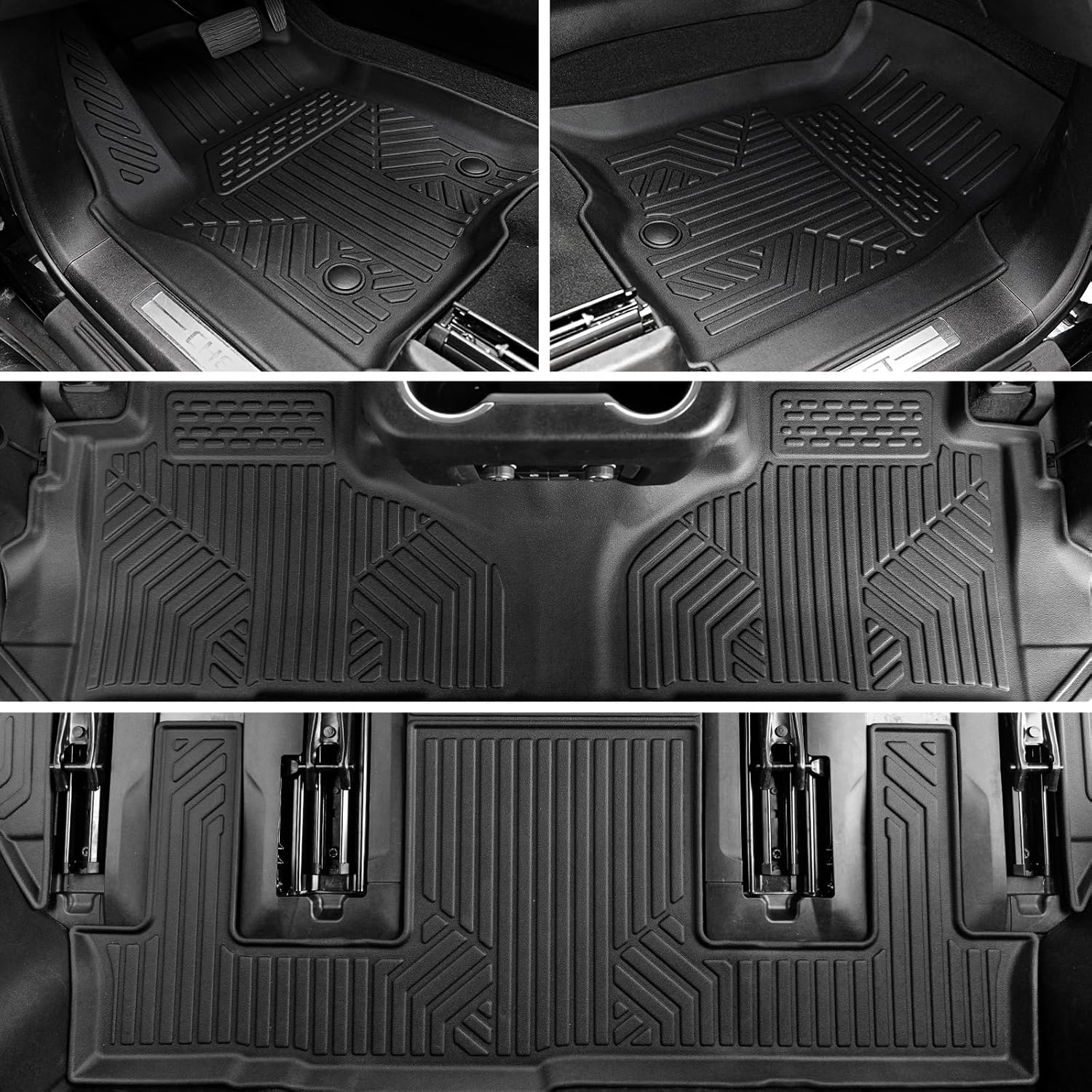 - Custom Fitment: Precisely engineered with 3D laser scanning for 2021 2022 2023 2024 2025 Chevy Tahoe / GMC Yukon with 7-passenger seating (2nd-row Captain's Chairs). Not fit Yukon XL/Suburban. Includes floor mats, cargo liner, 3rd row seat back protectors, 2PCS inter and 4PCS outer door sill guards – 40% more components than standard sets