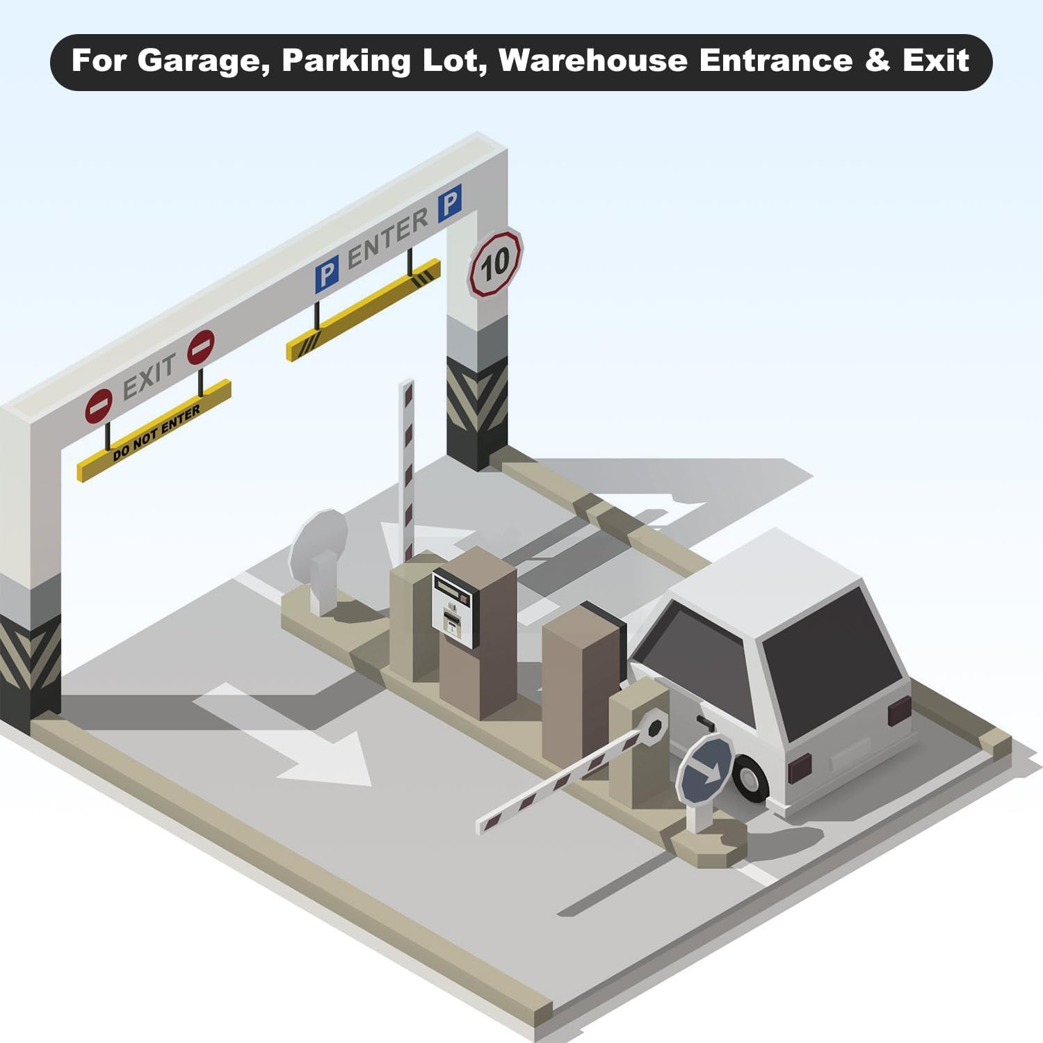 - Flexible Applications --- Height limiting and no entry crossbars, for parking lot, warehouse, garage, or other large buildings entrance and exit.