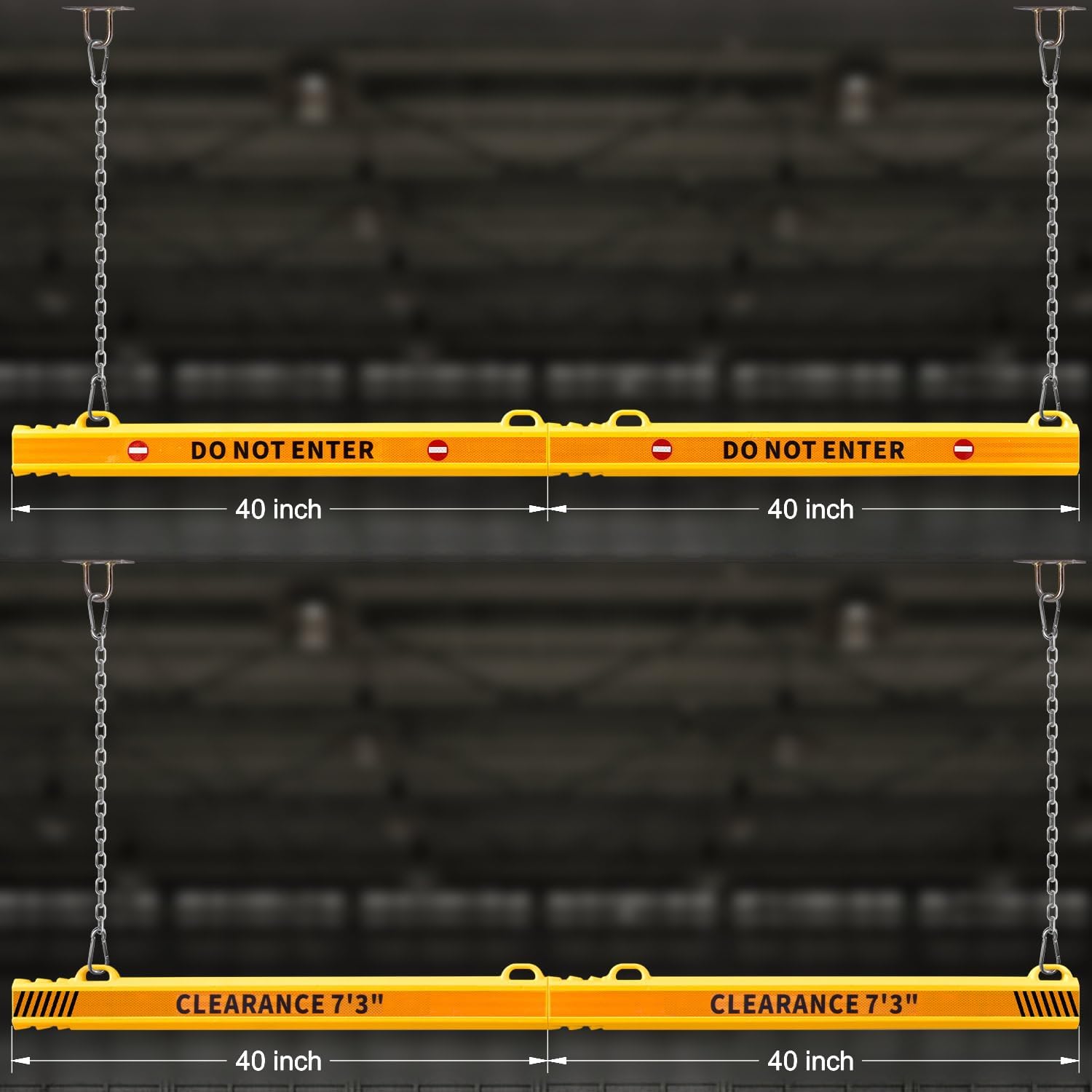 78" Parking Garage Height Clearance Bar - DO NOT ENTER & CLEARANCE 7' 3" - Hanging Crossbar by Chains, Yellow Reflective Parking Signs for Parking Lot, Warehouse, Garage Entrance and Exit