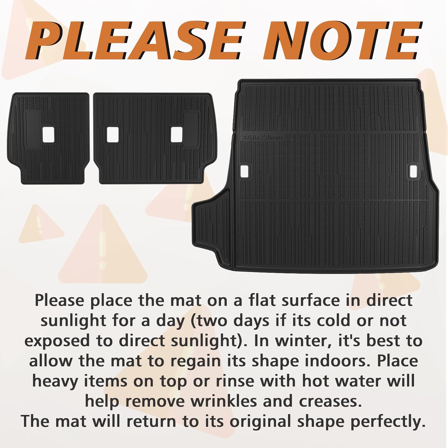 - Function & Why Us: Protect your car with full coverage, keeping a clean look and OEM style. 3D texture and anti-slip surface design ensure a flush fit and perfect stability. TripleAliner's mats feature reinforced edges for long-lasting performance