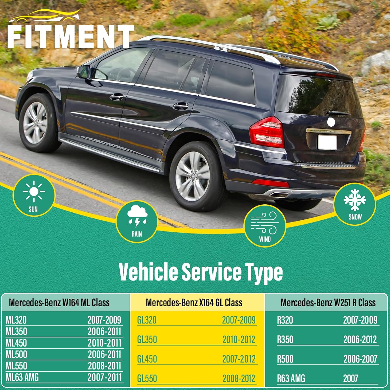 - [FITMENT1]: Replacement for Mercedes-Benz W164 ML Class:2007-2009 ML320; 2006-2011 ML350; 2010-2011 ML450; 2006-2011 ML500; 2008-2011 ML550; 2007-2011 ML63 AMG.