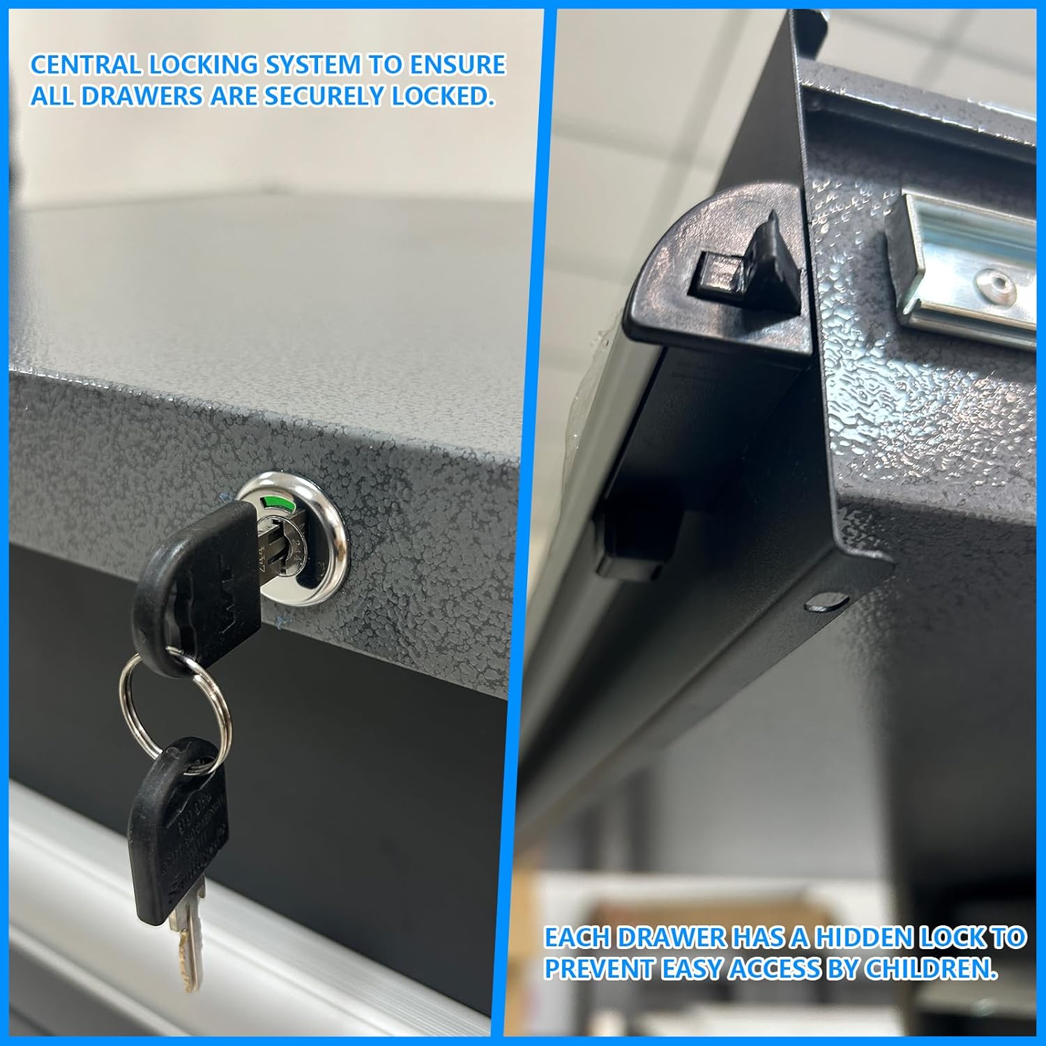 - 【Versatile Use】Providing ample storage capacity and a practical workbench, this tool cabinet set is perfect for a wide range of settings, including garages, repair shops, utility rooms, factories, warehouses, workshops, and more.