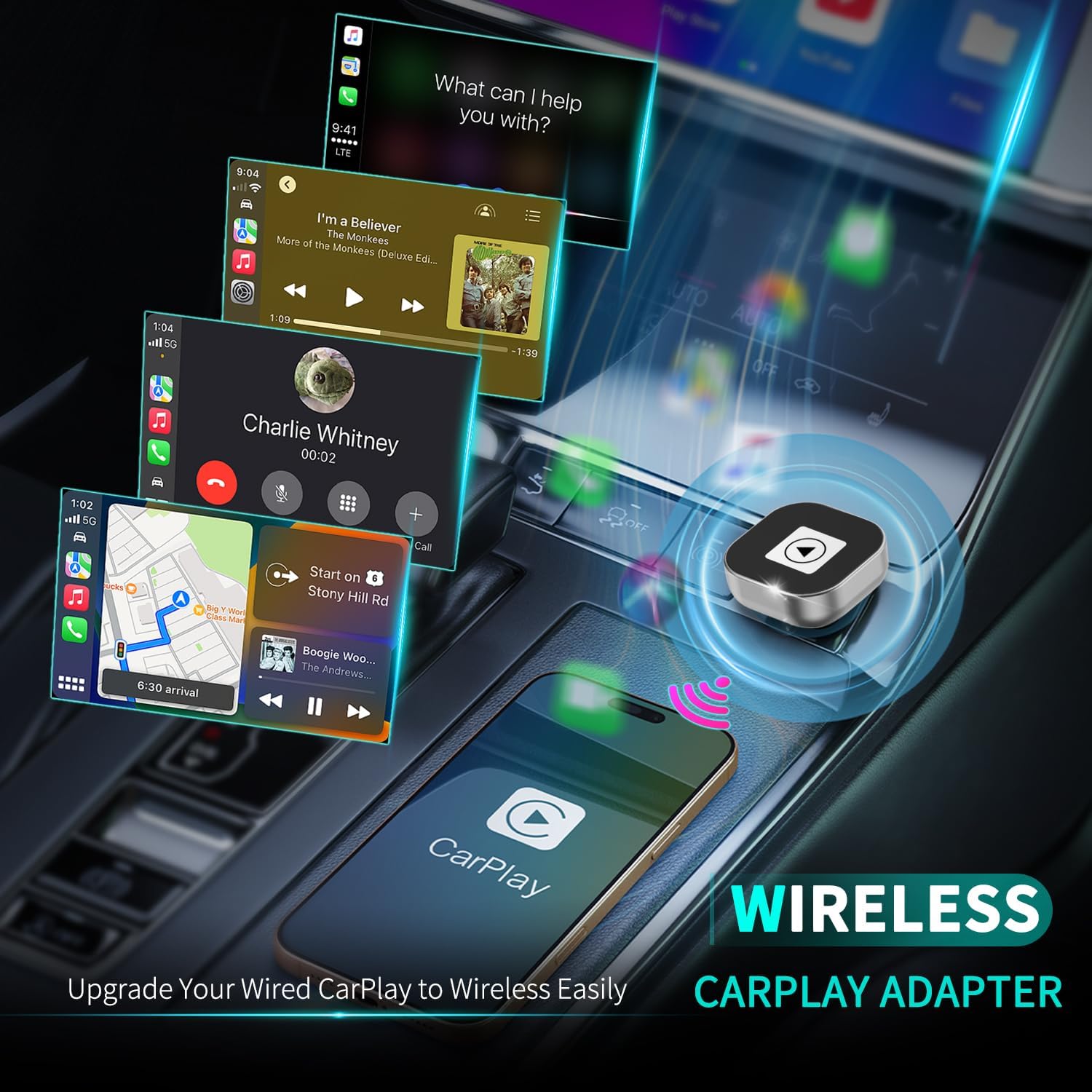 - **Ditch the Clutter – Experience True Wireless Freedom!** – Tired of fumbling with cables every time you get in the car? Our Wireless CarPlay Adapter is the smallest,most reliable solution,that converts your factory wired CarPlay to wireless in seconds