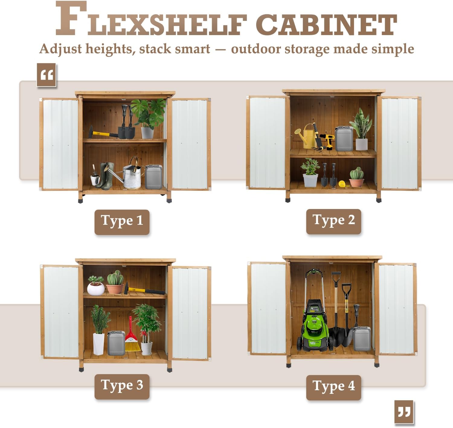 - Secure & Weatherproof: This outdoor storage cabinet waterproof comes with lockable doors and strong magnets for security. The asphalt roof shields against rain, snow, and UV rays—ideal for garden storage cabinets or patio storage cabinet use