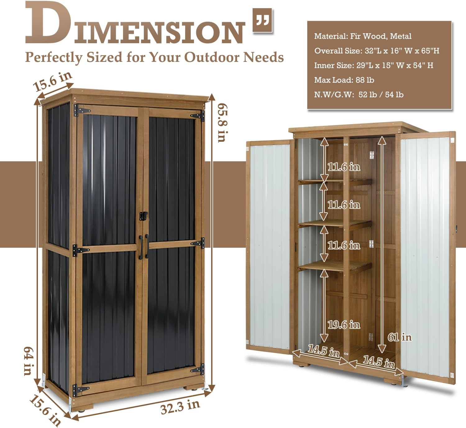 - Waterproof & Weatherproof: Our small outdoor storage cabinet is crafted from durable wood and metal to withstand rain, wind, and sun. This waterproof outdoor storage cabinet keeps belongings dry in gardens, balconies, or backyards year-round