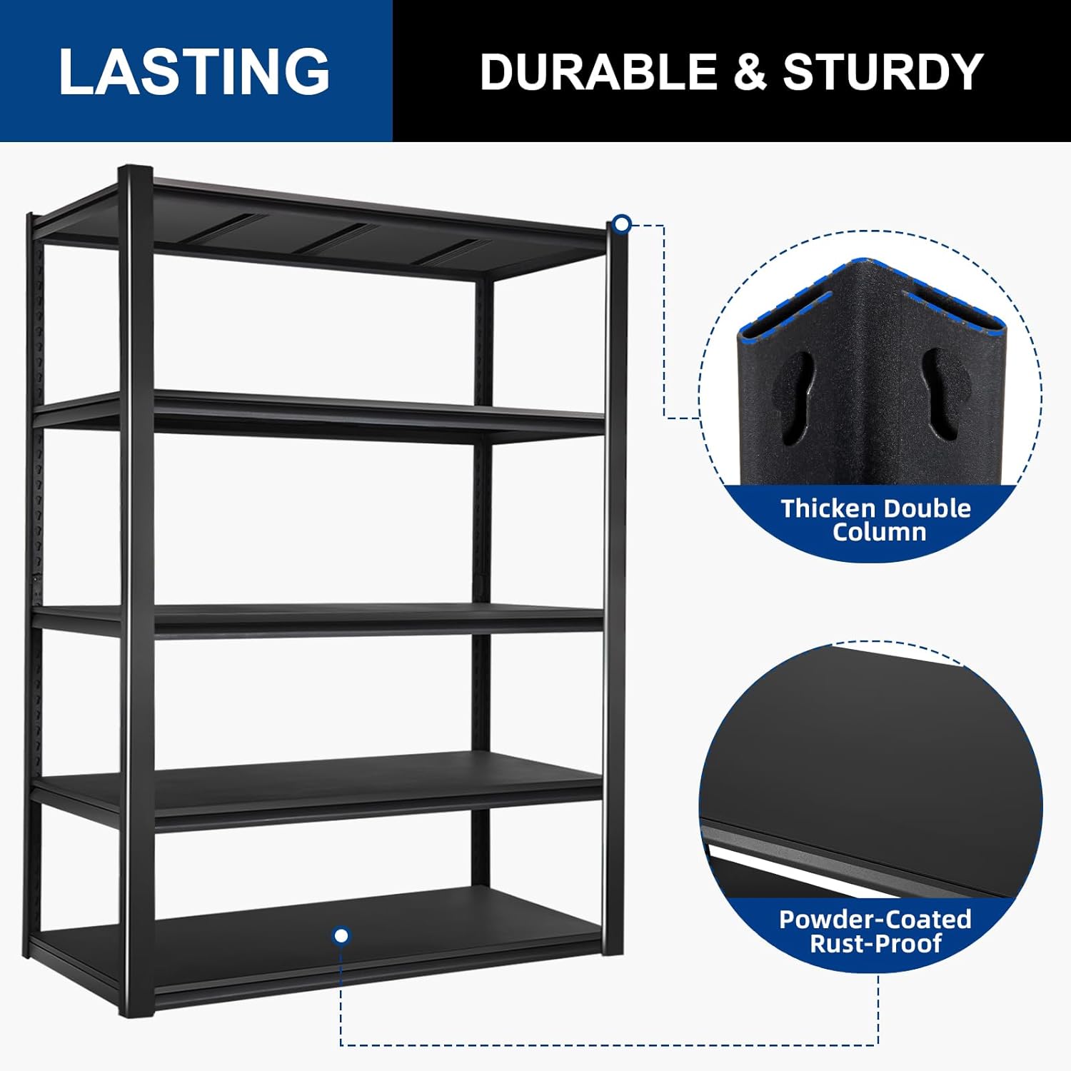 - High Weight Capacity: Each shelf of this 5-tier storage unit can support up to 700 pounds when evenly loaded, with a total maximum load capacity of 3500 pounds. Ideal for garages, basements, workshops, and any space requiring reliable and heavy-duty storage solutions.