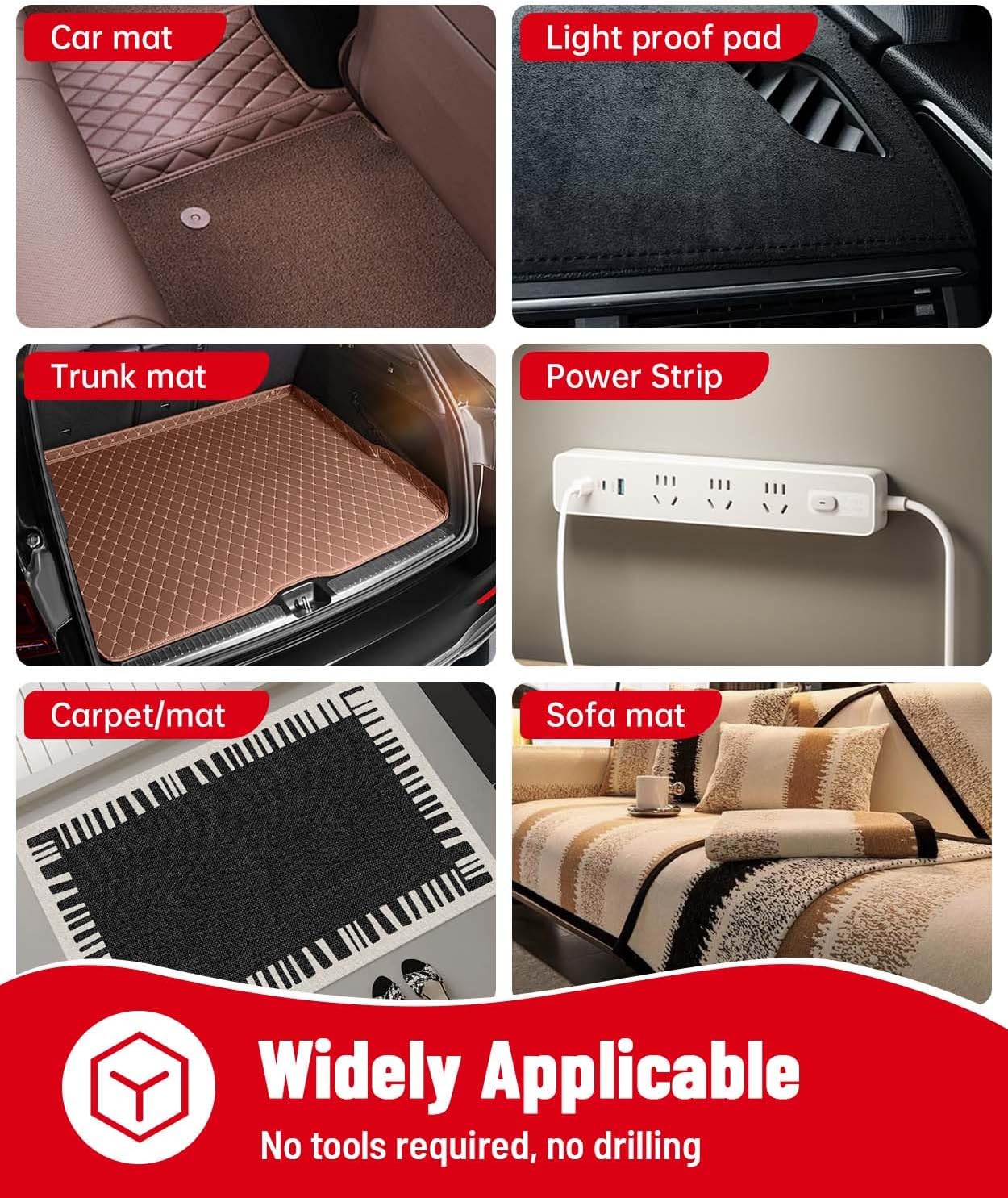 - ๐๐๐๐ ๐๐จ๐๐๐: Suitable for outdoor and indoor use. All kinds of temporary solution for mounting removable items, as hold couch cushions,rugs,car mats,curtains, remote controls,hanging photo frame, mounting crafts, organizing garage tools, power strip and organizing cables, led light,decorations,dry erase boards and more.Whether industrial use or daily use.Make your life easier.