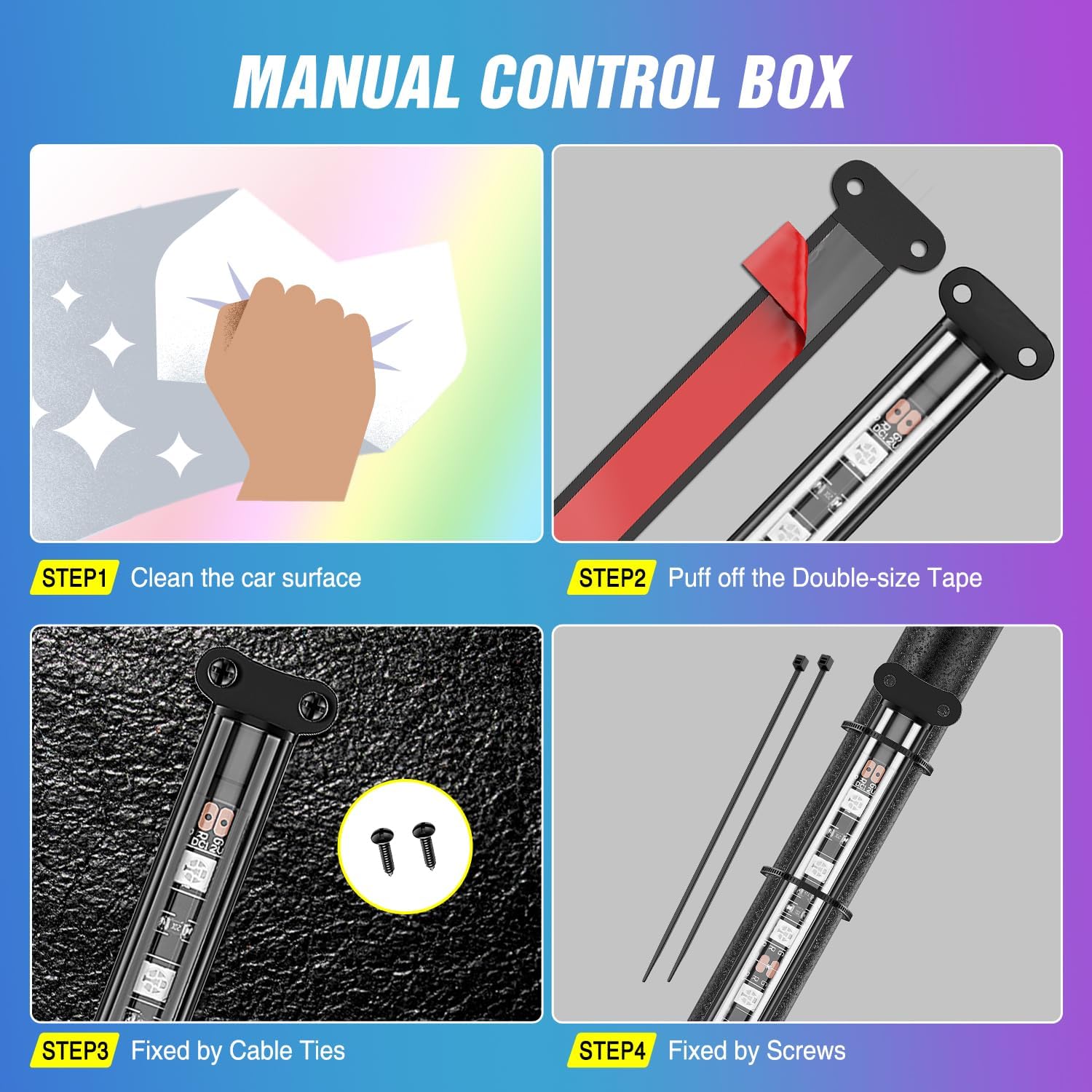 - Dream COLOR: Our car lights covered 16 million colors and tones for selection and make your car personality. At the same time, it has a variety of scene modes for you to choose. Allowing you to enjoy rainbow-like lighting effects.
