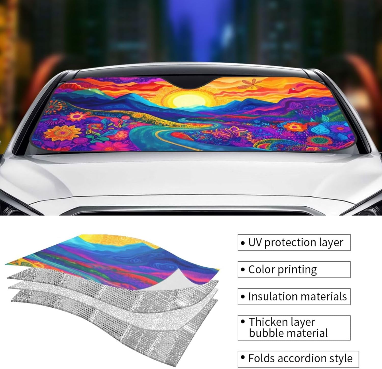 Abstract Flower Sunrise Car Sun Shade Windshield Sunshade Foldable Front Window Shield Cover for Truck SUV