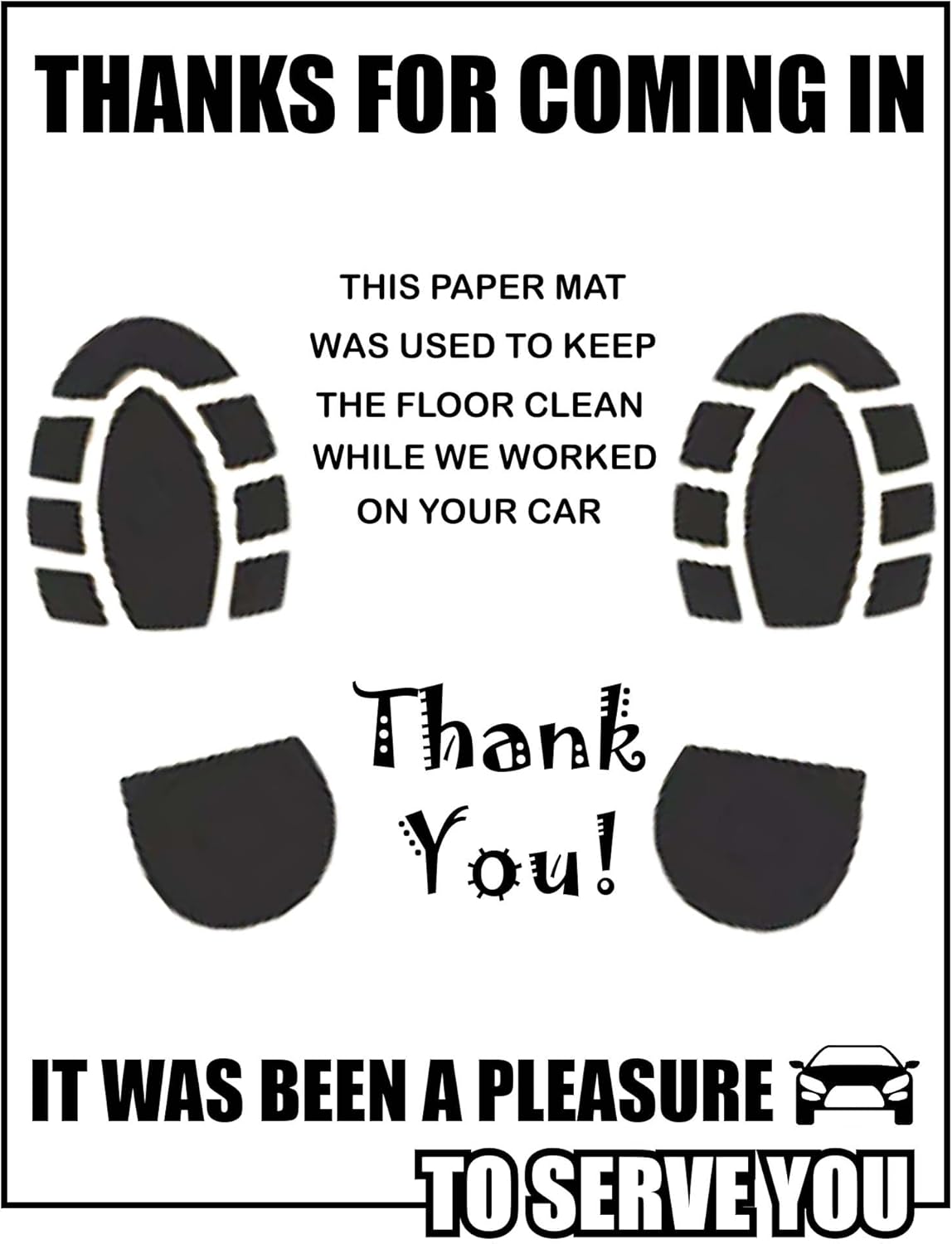 - 【Friendly Design】Our paper floor mats design with a cute footprints and heartfelt messages, blessings blessing words to demonstrate the shop's concern for the care of the vehicle. It also can play an excellent decorative role.