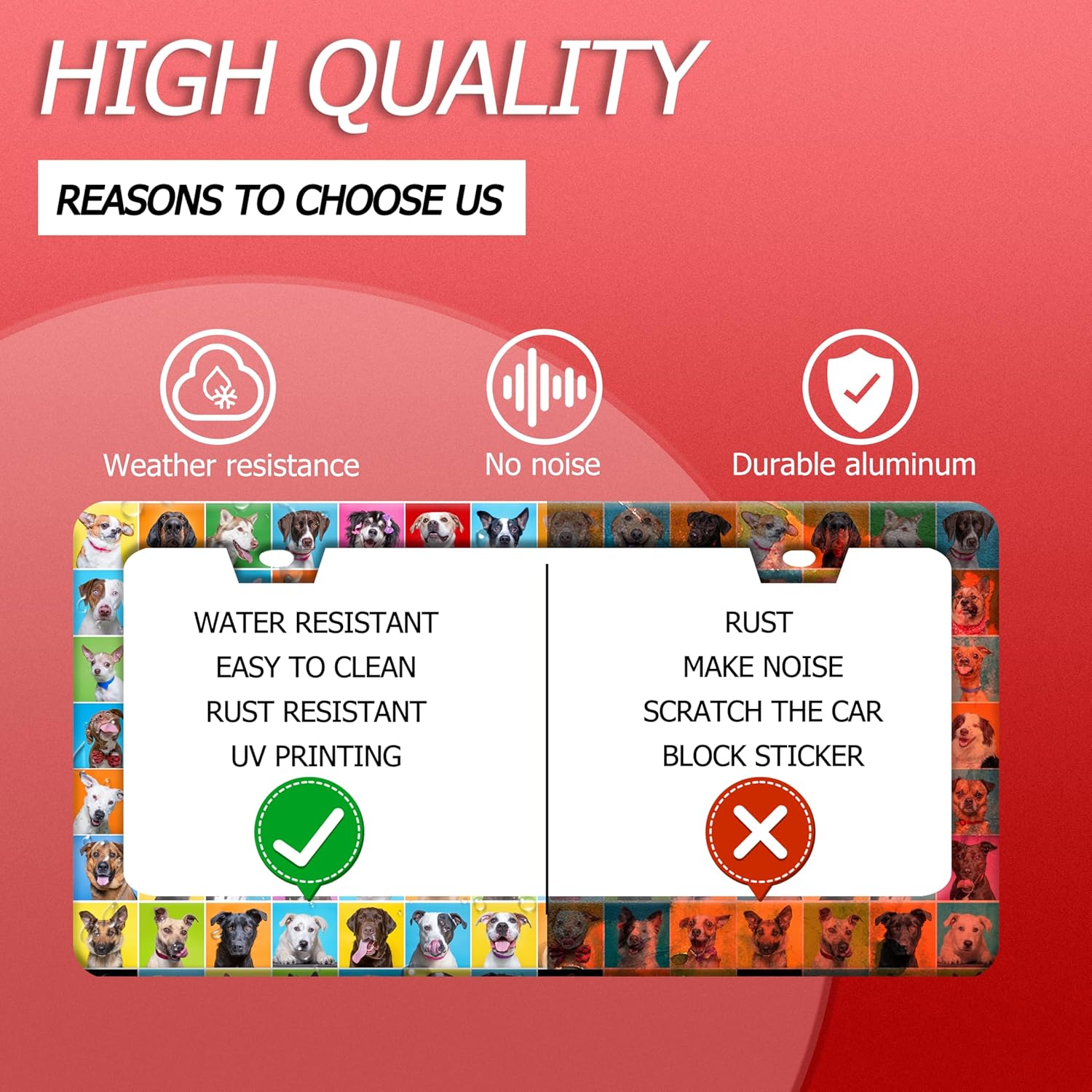 Dog License Plate Frame Puppy Pet License Plate Frames Funny Stainless Steel Accessories Cars Decor with 2 Holes and Screws Fits Standard Us Ca Vehicles License Plate Holder 12.2 X 6 Inch