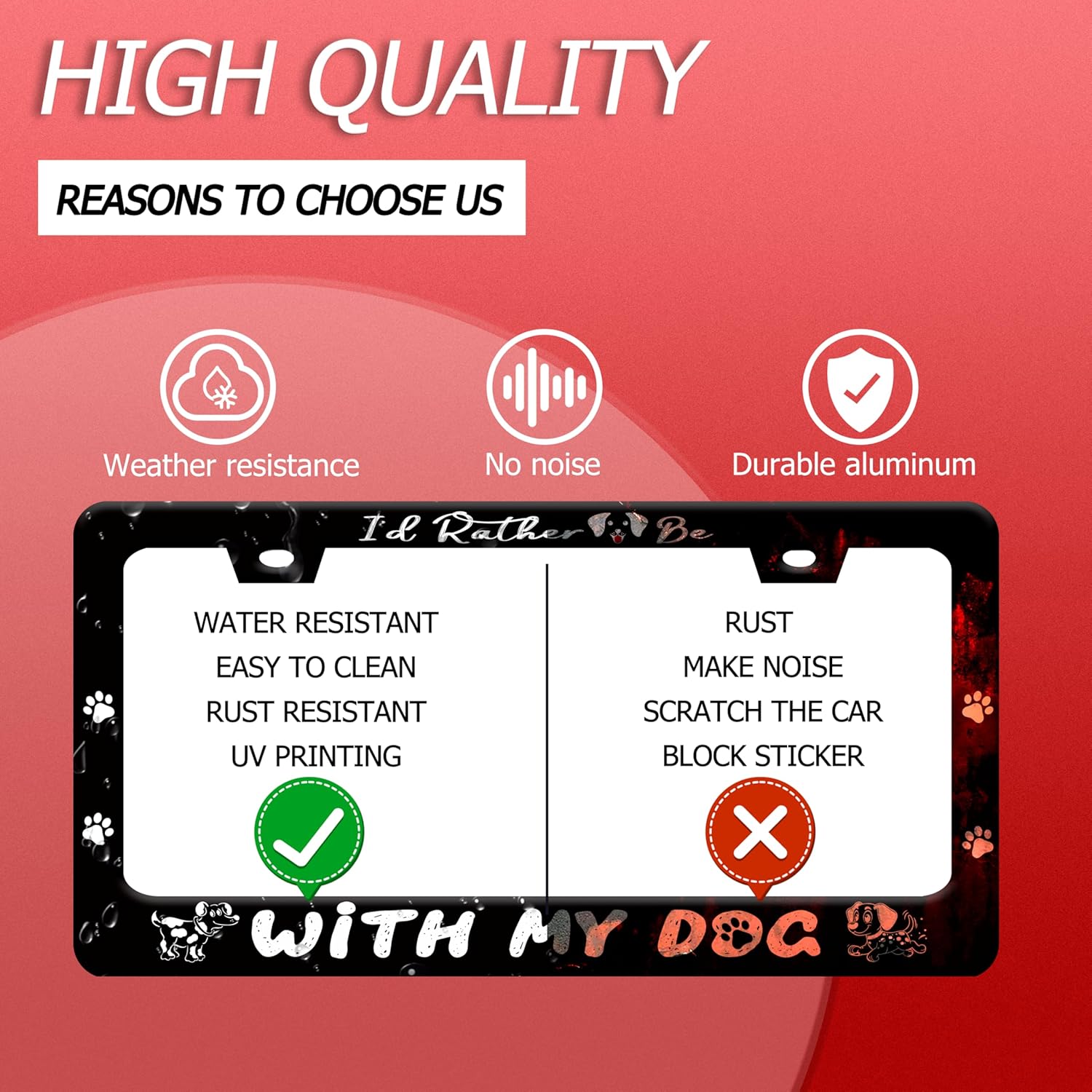 I'd Rather Be with My Dog License Plate Frame Pet License Plate Holder Funny Stainless Steel Accessories Cars Decor with 2 Holes and Screws Fits Standard Us Ca Vehicles 12.2 X 6 in
