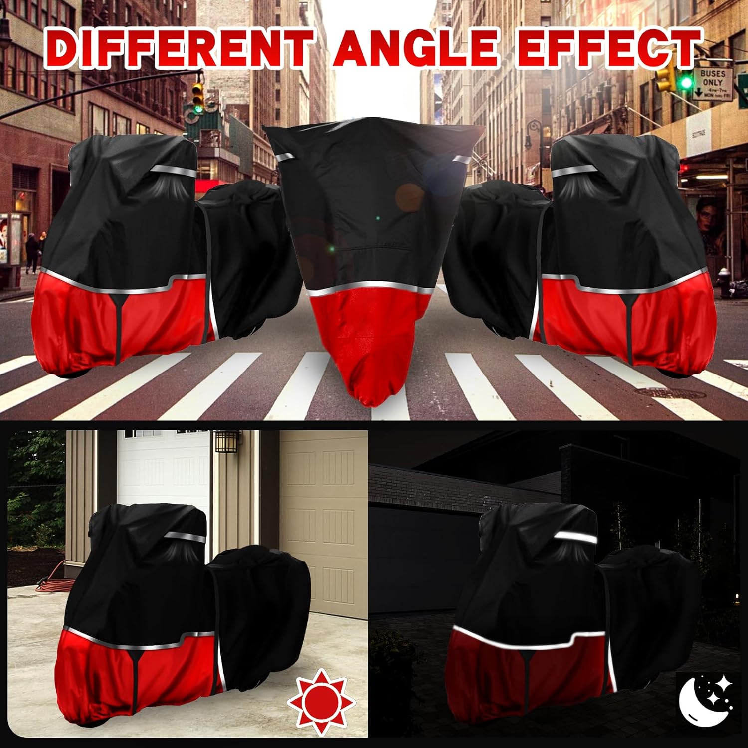 - All-Weather Protection for Harley Davidson: Equipped with two adjustable windproof buckles (front, middle), this Harley Davidson cover stays securely fastened even in storms. It shields your bike from rain, UV rays (SPF 70+), dust, scratches, bird droppings, and leaves, keeping it dry and well-protected outdoors
