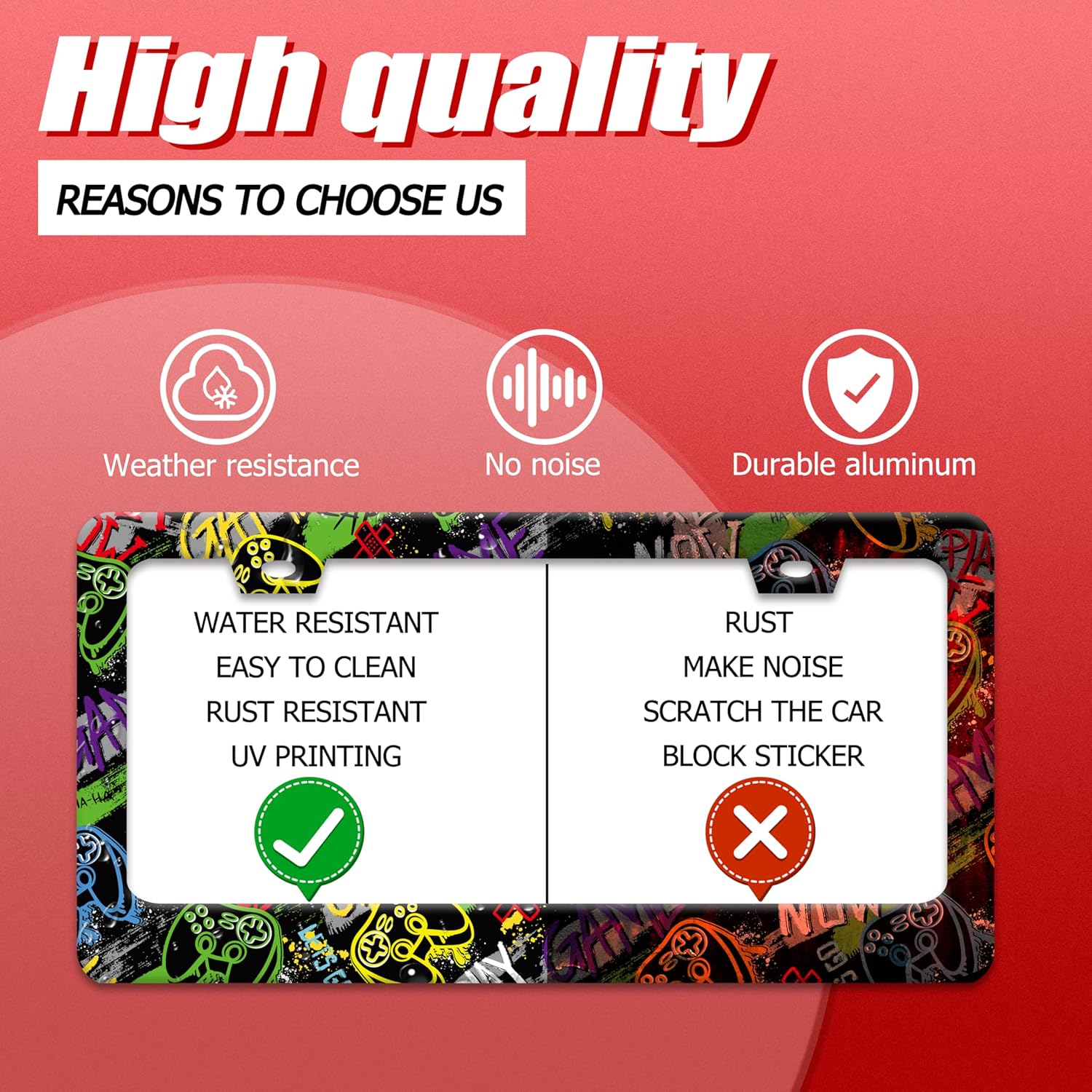 Game License Plate Frame Gamepad License Plate Holder for Car Decorative Parts Stainless Stee License Plate for Standard Us Canada Funny License Plate Frames 12x6 Inch