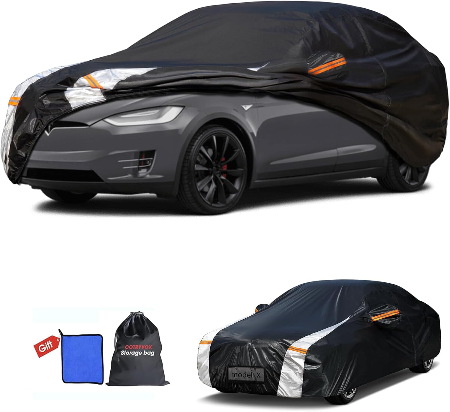 12-Layer Custom Fit Car Cover for Tesla Model X (2015-2025), Upgraded Waterproof All-Weather Full Exterior Cover with Door Zipper, for Snow Rain Dust and Sun UV Protection-Black.