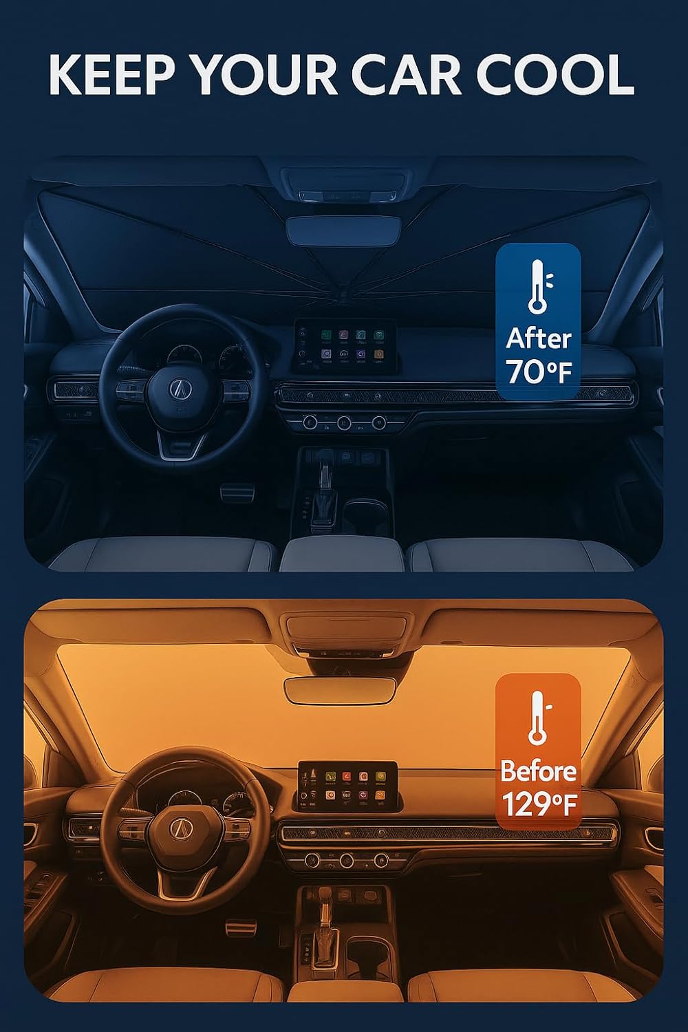- Certified Sustainable. Customized Windshield Sunshade: Specially designed for the 2023-2025 Acura Integra with precise mirror cutouts, providing 100% shading, carbon fiber handle, ensuring lightweight and durability while also having a fashionable feel. Our Integra windshield sunshade can protect the interior of your car from various light damage and prevent dashboard and seat degradation.