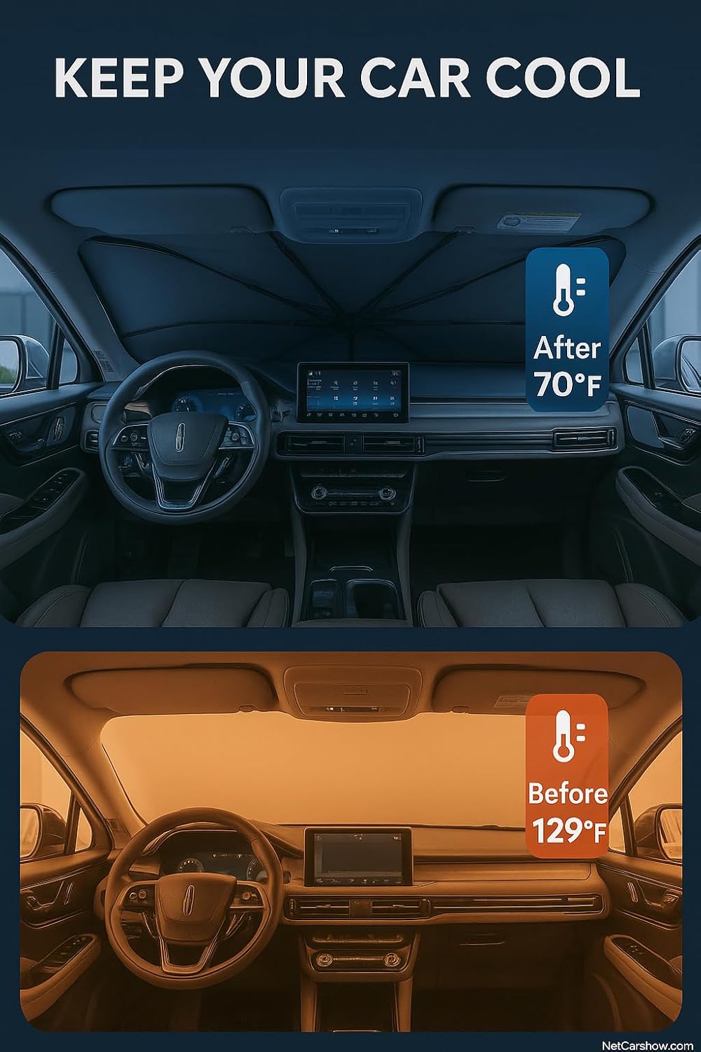 - Certified Sustainable. Customized Windshield Sunshade: Specially designed for the 2020-2025 Lincoln Corsair with precise mirror cutouts, providing 100% shading, carbon fiber handle, ensuring lightweight and durability while also having a fashionable feel. Our Corsair windshield sunshade can protect the interior of your car from various light damage and prevent dashboard and seat degradation.