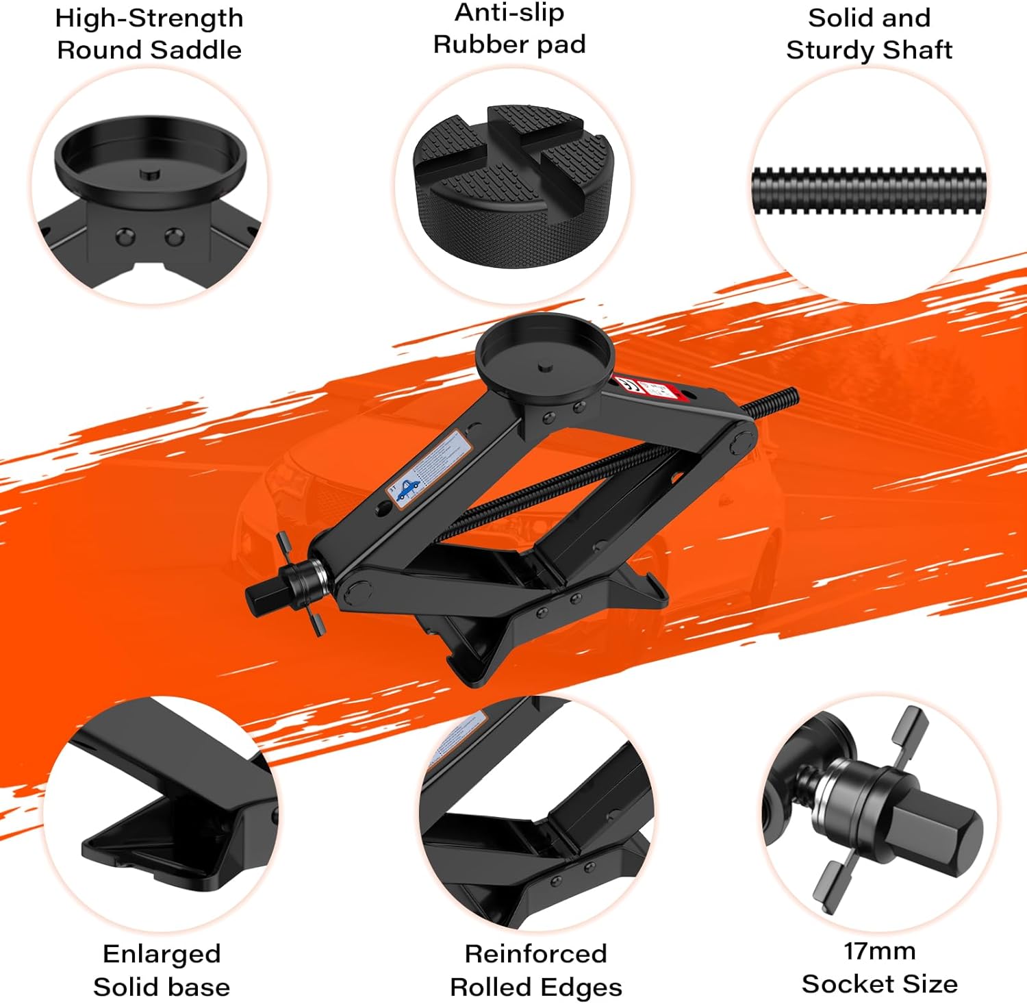- 【Upgraded Jack 】IMAYCC Jack comes with two non-slip Jack rubber pads that match it, which protects the car from steel beam scratches while lifting. and this car jack is made of high-strength cold-rolled steel with an enlarged base that ensures its stability during lifting;