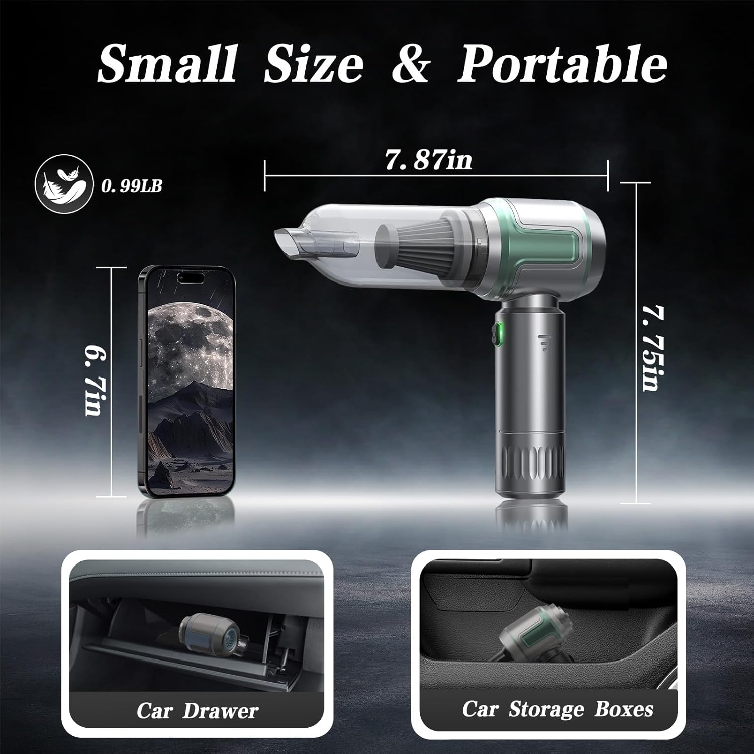Car Vacuum Portable Cordless, 16000PA Powerful Car Vacuum Cleaner, 7 in 1 Mini Vacuum Handheld Rechargeable, Air Duster, Dual Filter for Cars, Home, Office, Pet