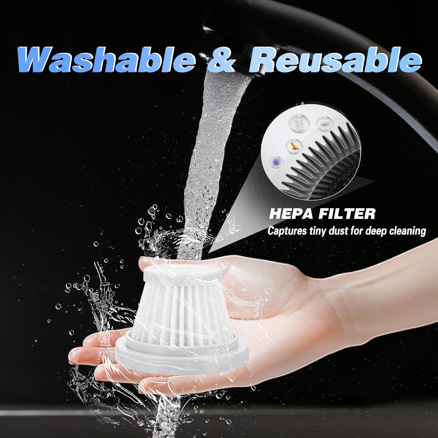 - Effortless Maintenance: Hand Vacuum is simple to disassemble, allowing you to effortlessly dump the garbage and clean the vacuum cleaner. The HEPA filter can be washed and reused, ensuring efficient suction power while keeping dust and dirt out to prevent blockage.