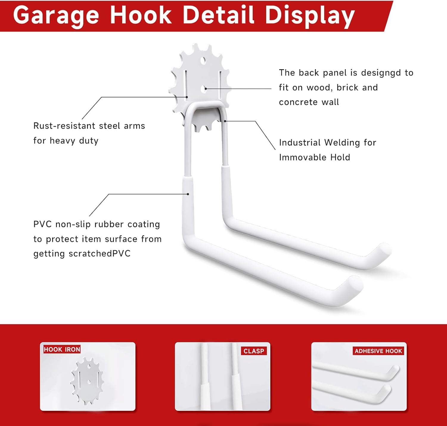 - Patented Gear-Head Heavy Duty Garage Hook: The Wall steel ladder hook features precision-welded heavy-duty iron construction for unbreakable strength and maximum load 110 LBS