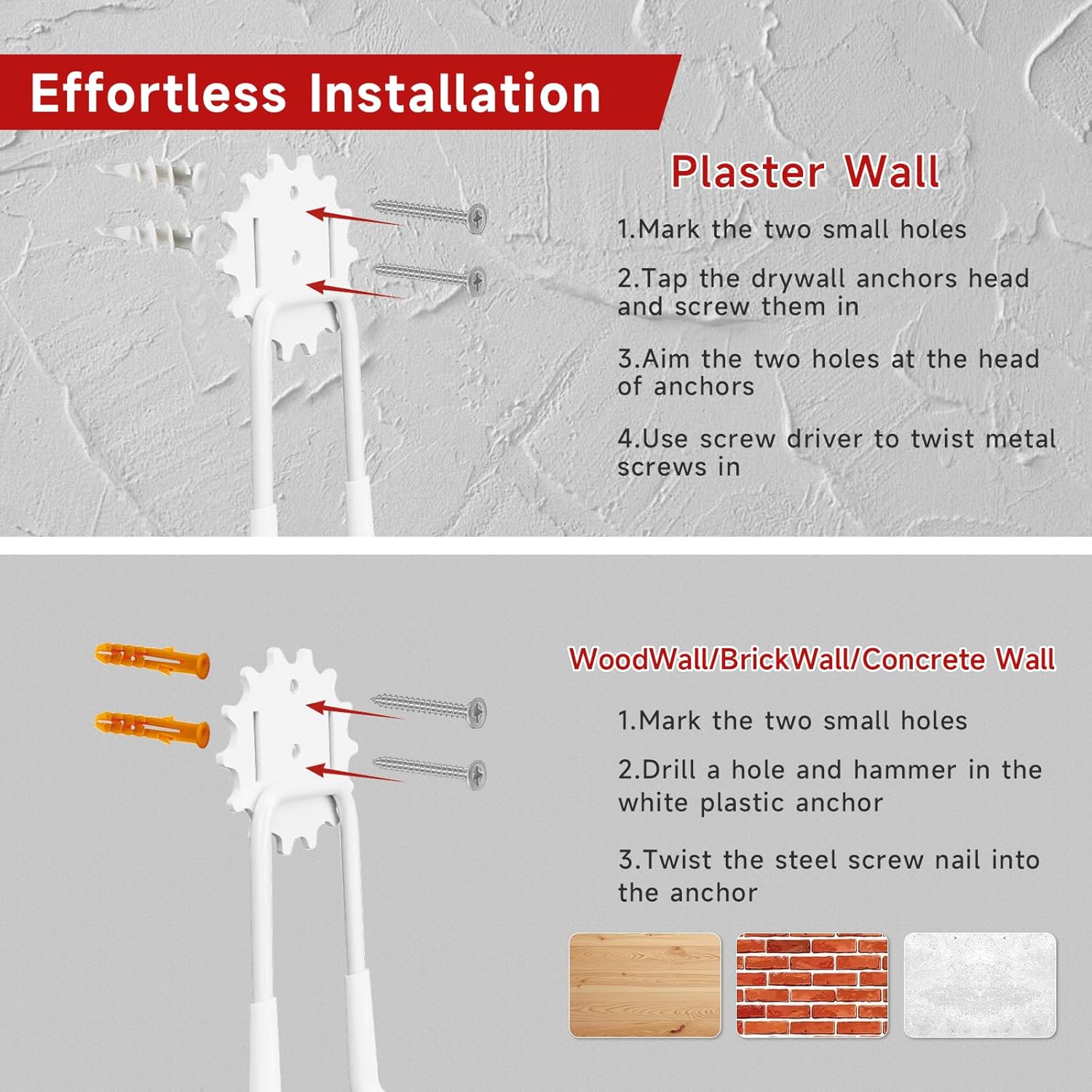 - Easy To Install: Comes with a total of 20 sets of screws, simply with a drill and screwdriver, the garage heavy-duty storage hooks can be easily installed on plaster walls, wooden, concrete, and brick walls