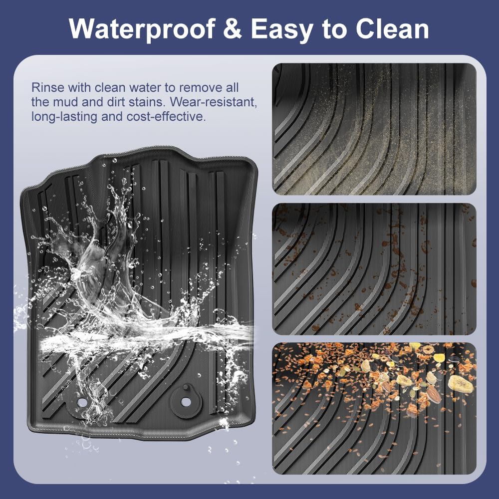 - 【3D Custom Fit & All Weather Protection】Advanced 3D laser scanning ensures a perfect fit with full coverage for your vehicle's floor. Designed to handle any weather, the custom fit mats feature raised edges, anti-slip texture, and deep channels that trap water, mud, snow, and debris—keeping your interior clean and safe, even with wet shoes.